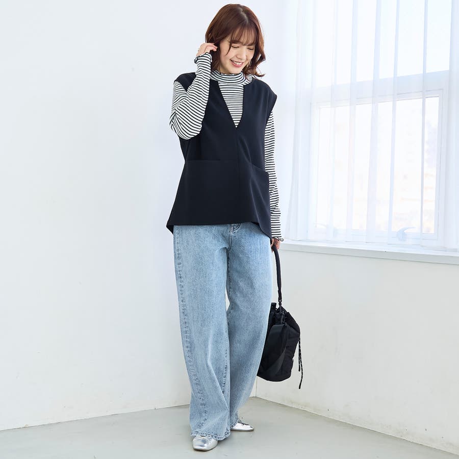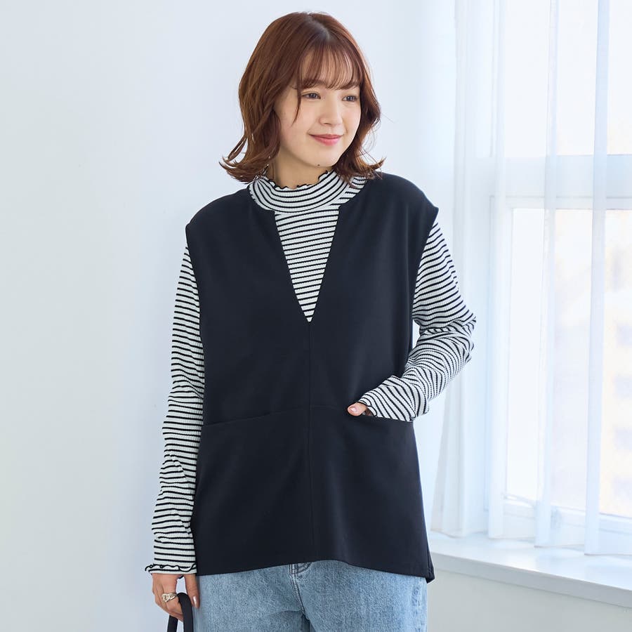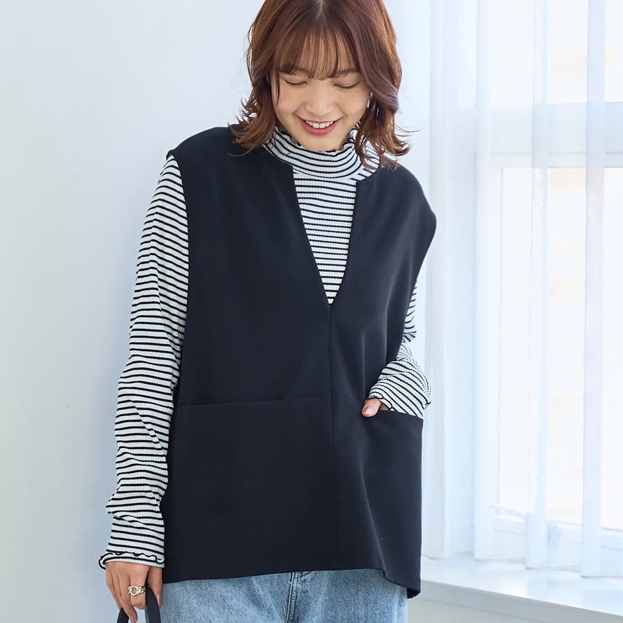 キーネック仕様で顔まわりをすっきり演出。ハイネックやカットソーとのレイヤードも楽しめ、