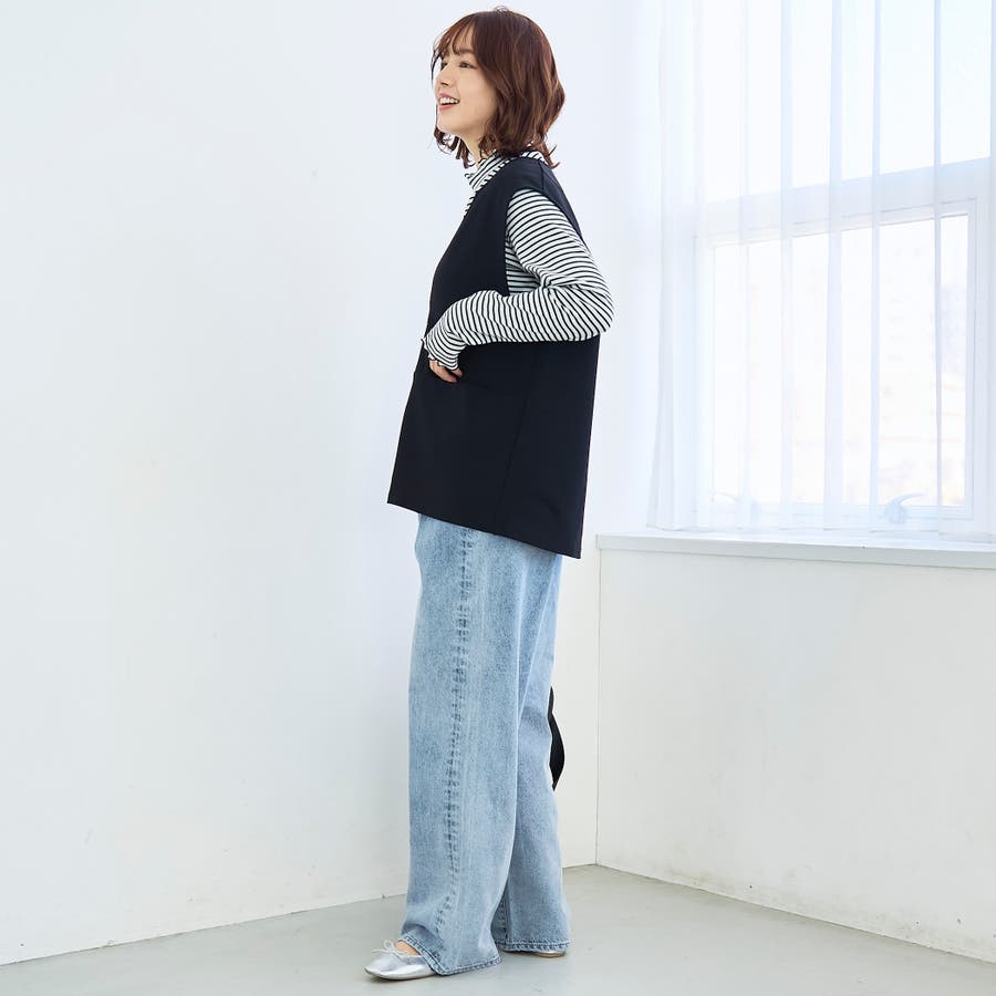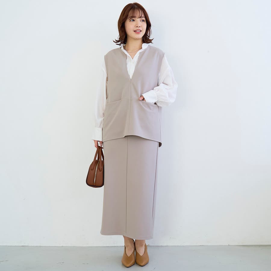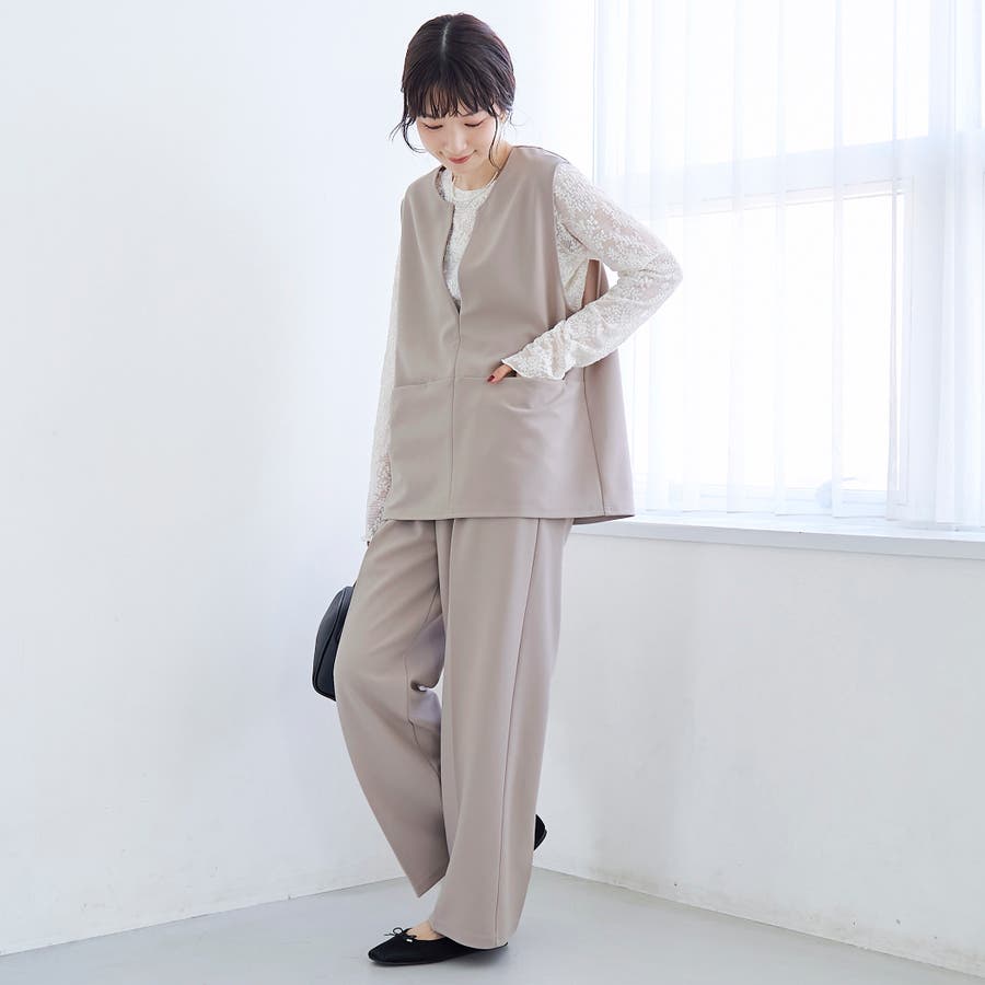 イージービューティワイドパンツ・ナロースカートと同じ素材を使用しているので、セットアップでの着用も可能です。