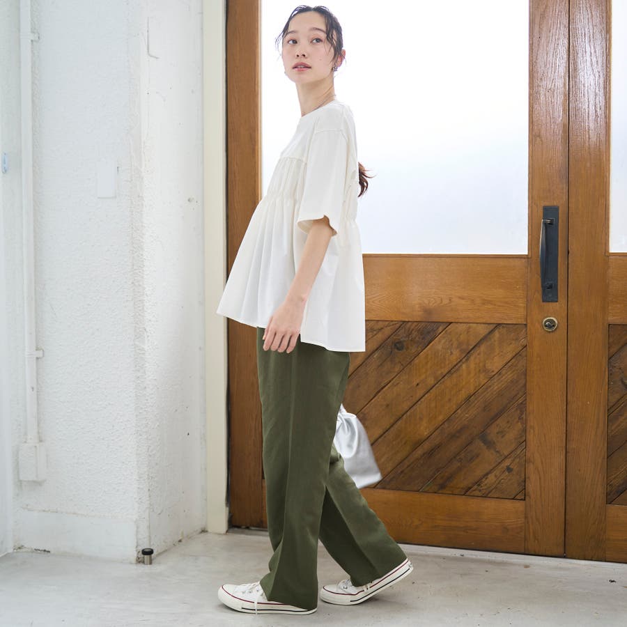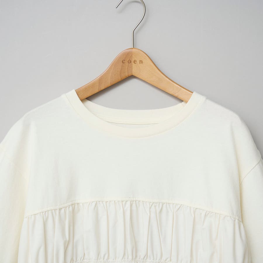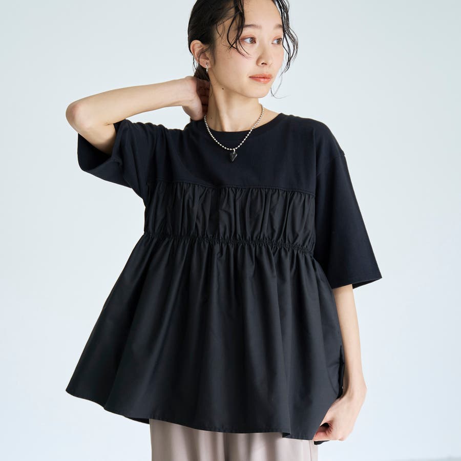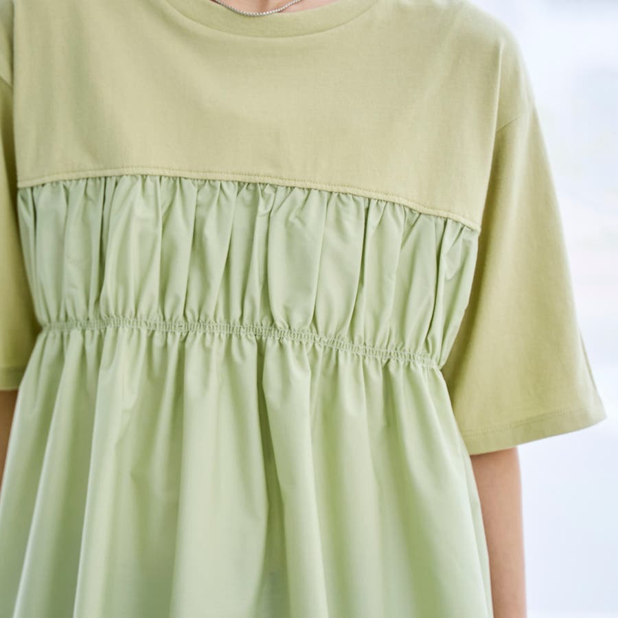 布帛ドッキング 切替ギャザーTシャツ