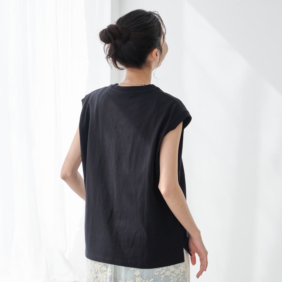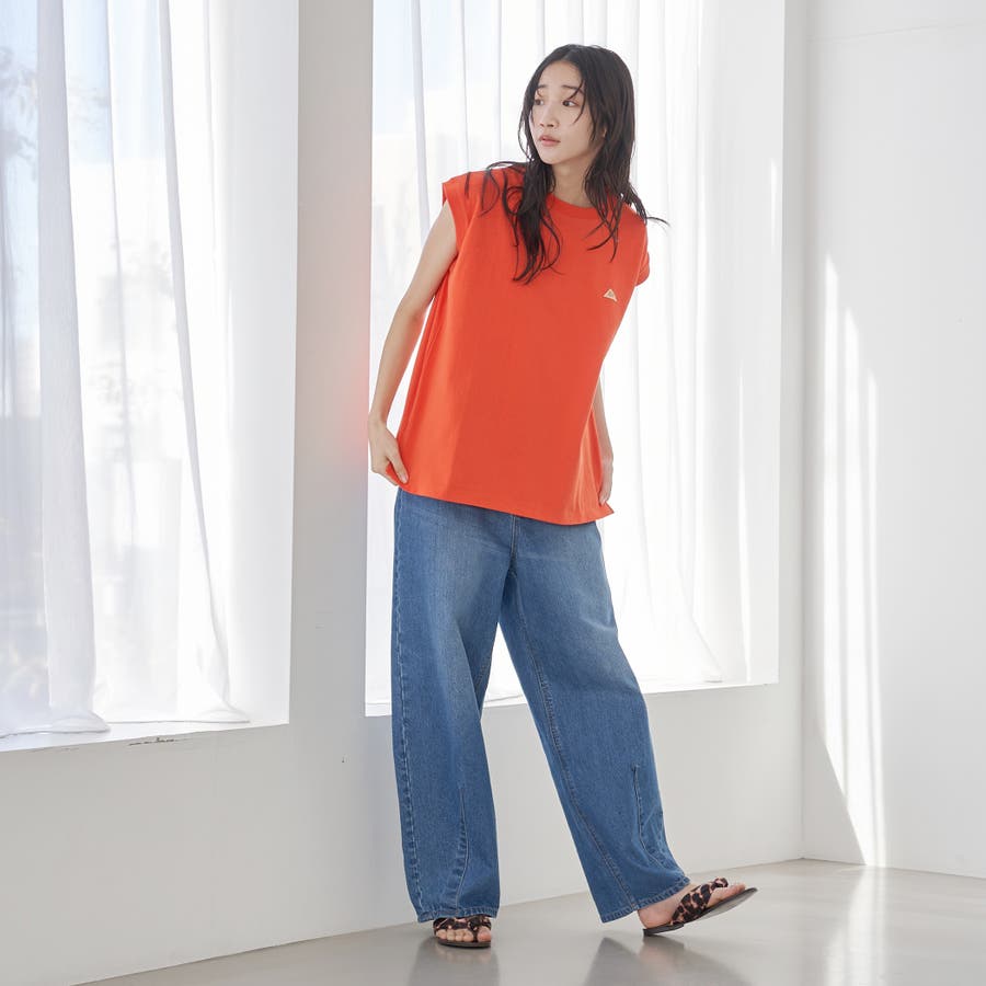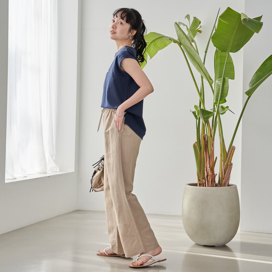 ・肩のラインをきれいに見せるデザインで、カジュアルながらも女性らしい印象に。