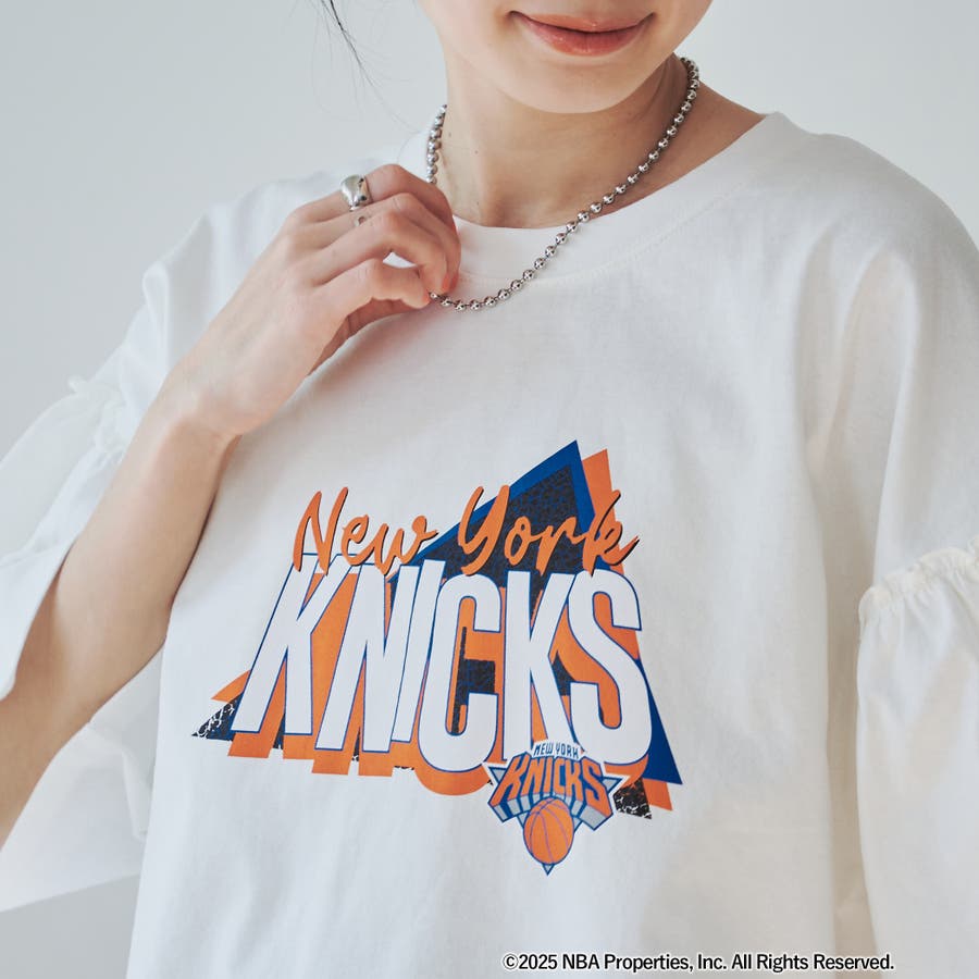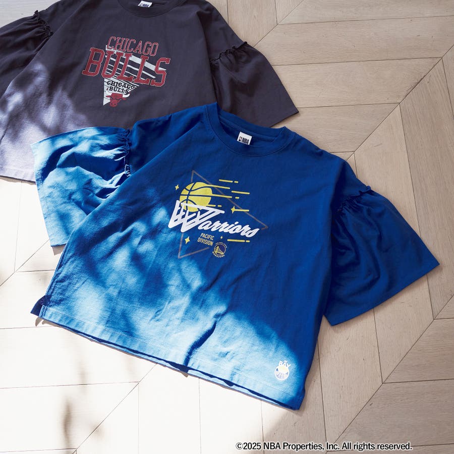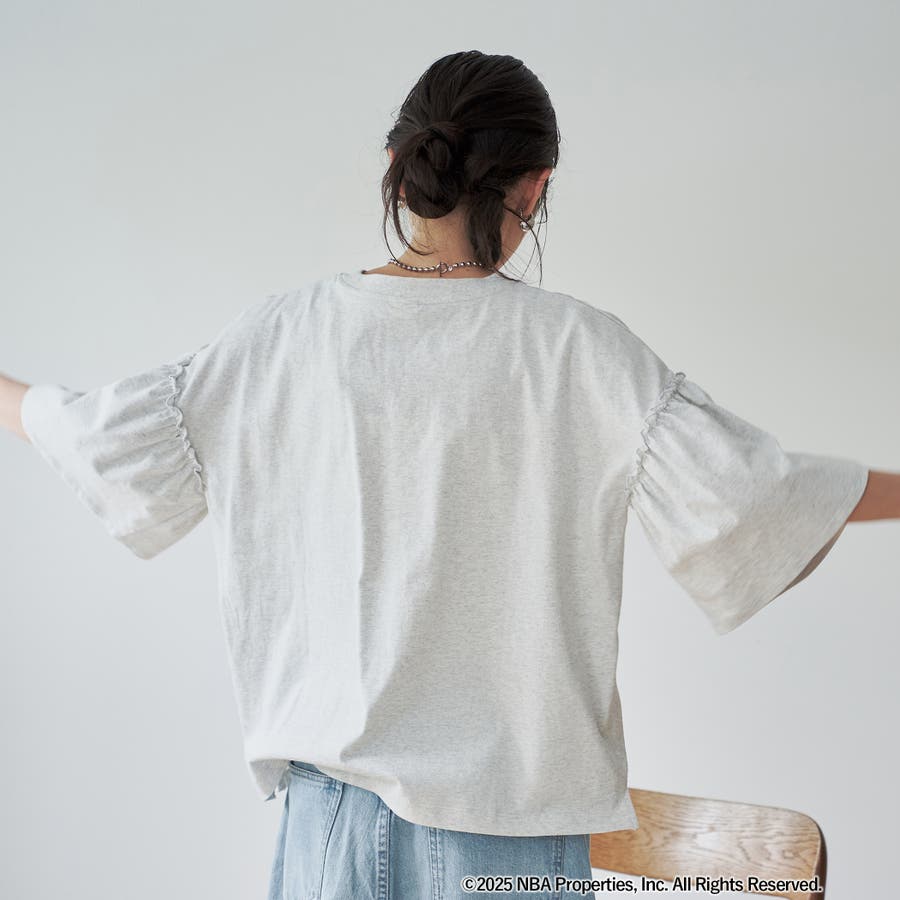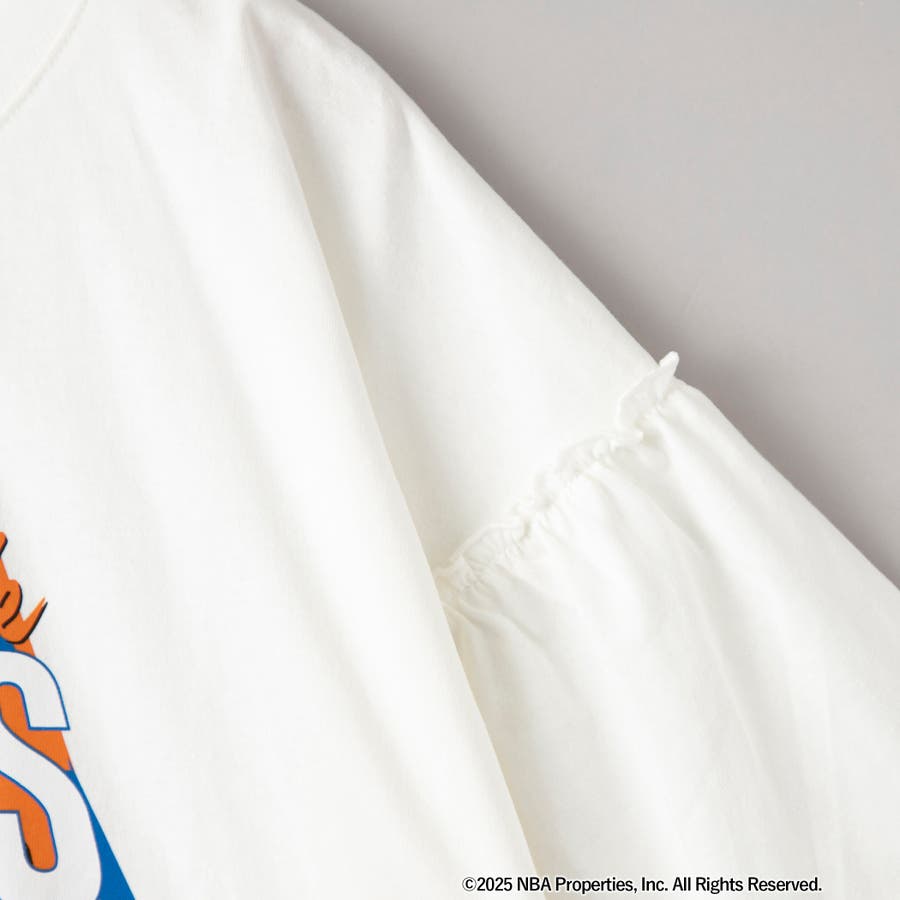 華やかなフリルスリーブが特徴のNBA別注アイテム。