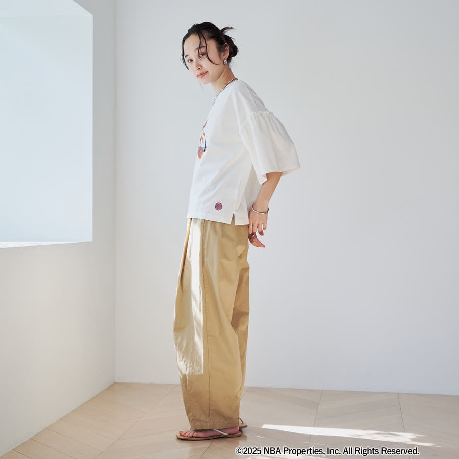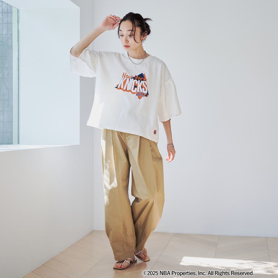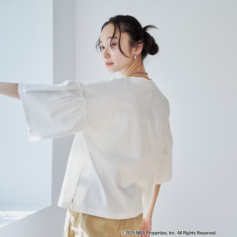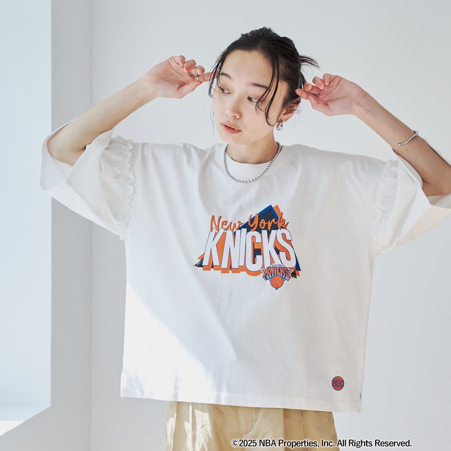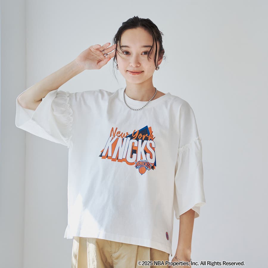 華やかなフリルスリーブが特徴のNBA別注アイテム。