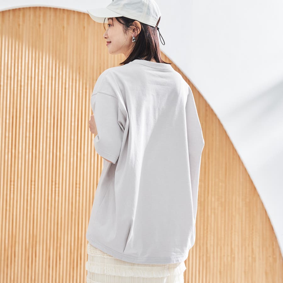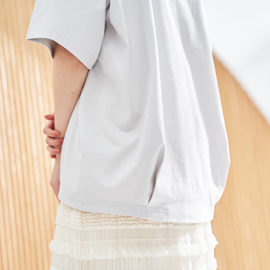 後ろ裾にタックを施すことで、自然な丸みを帯びたコクーンシルエットに仕上げたTシャツ。