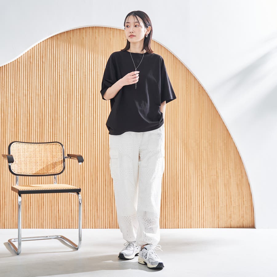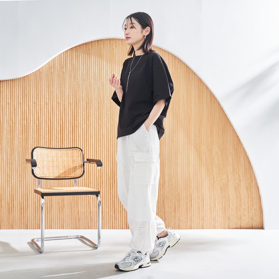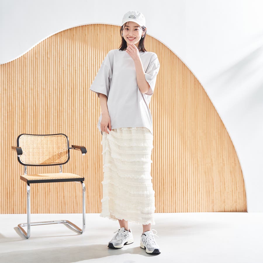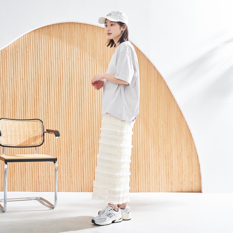 身体のラインを拾いにくく、ゆとりのあるフォルムがこなれ感を演出します。