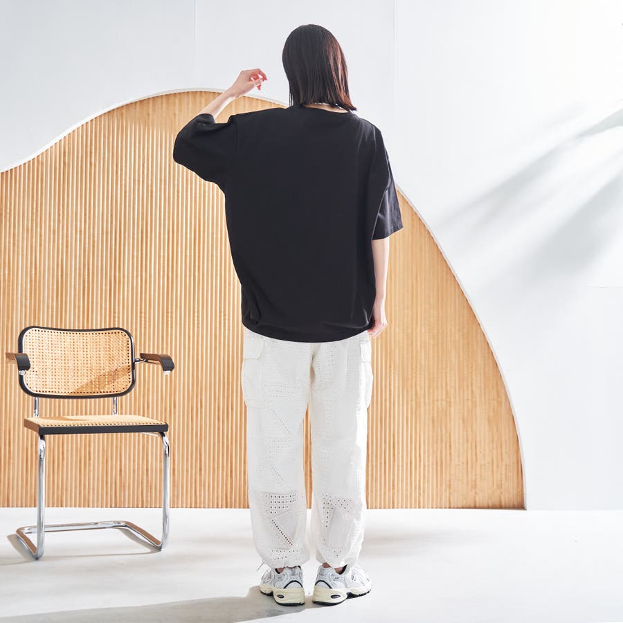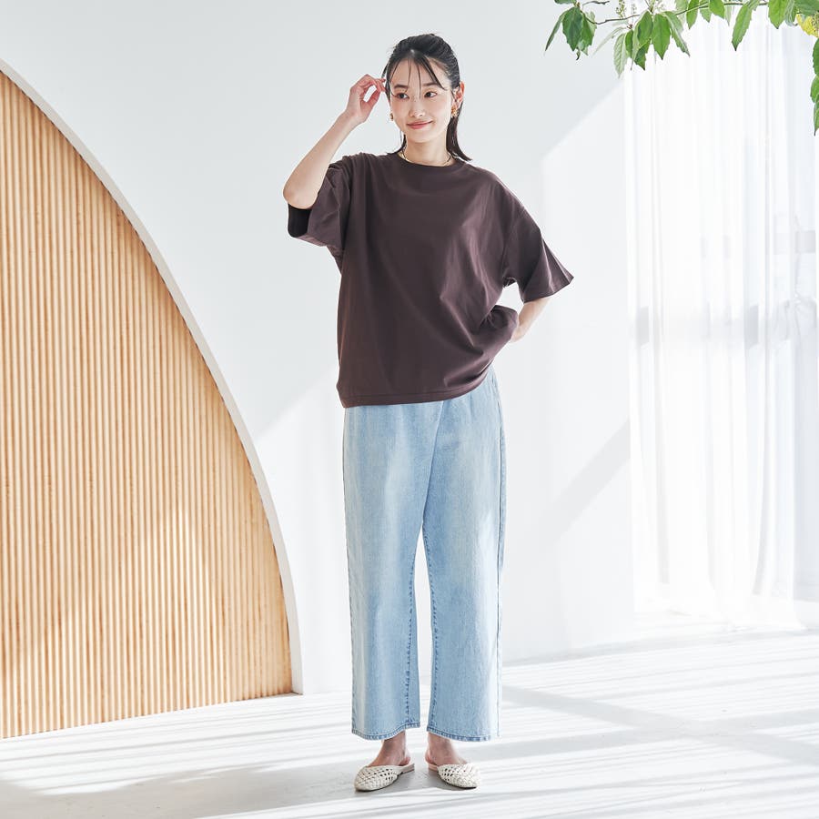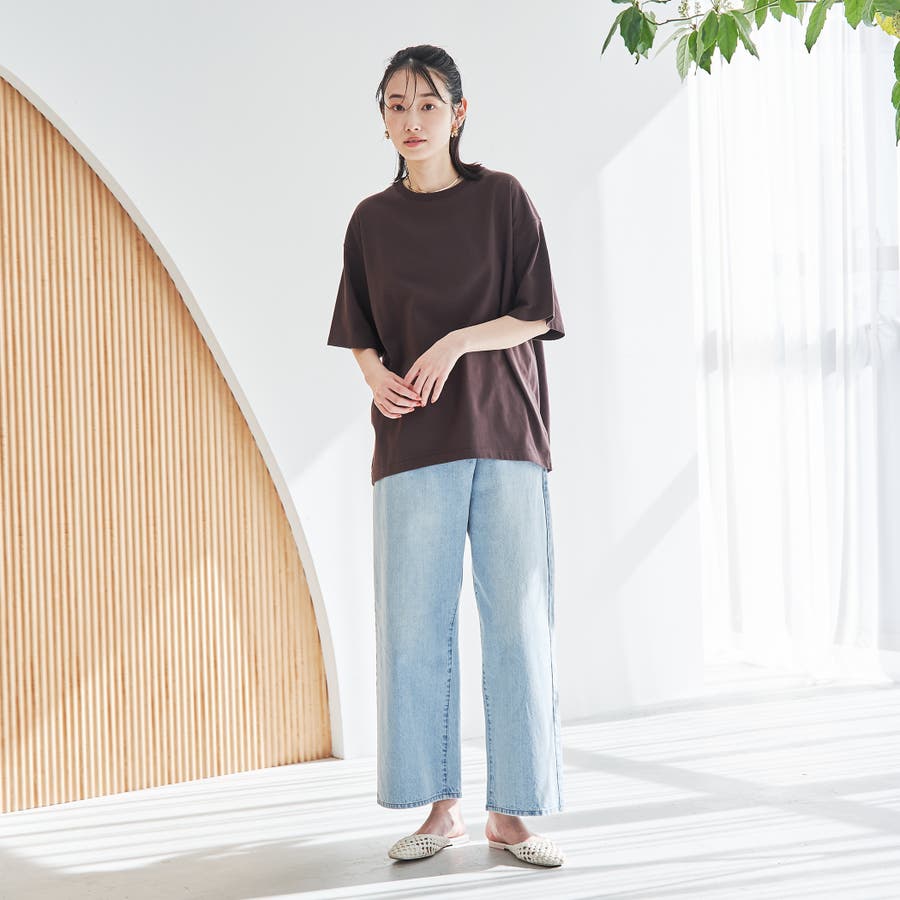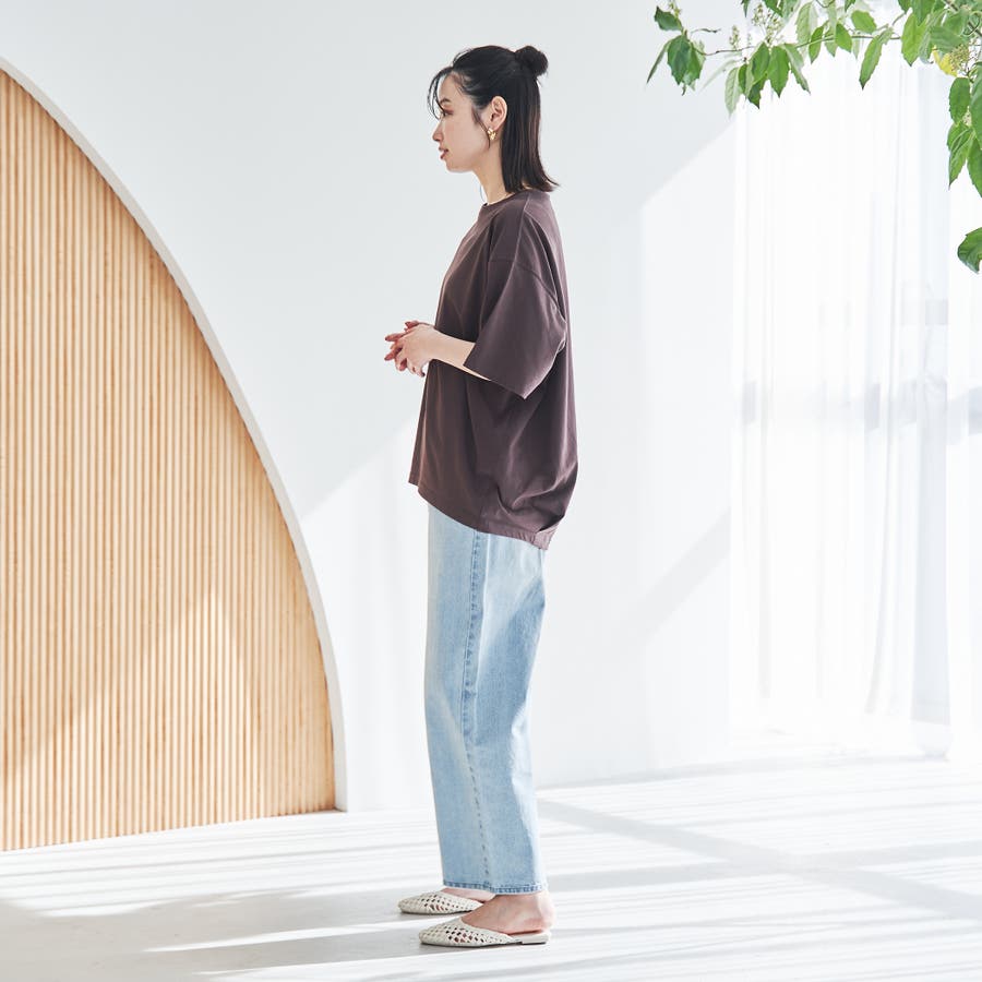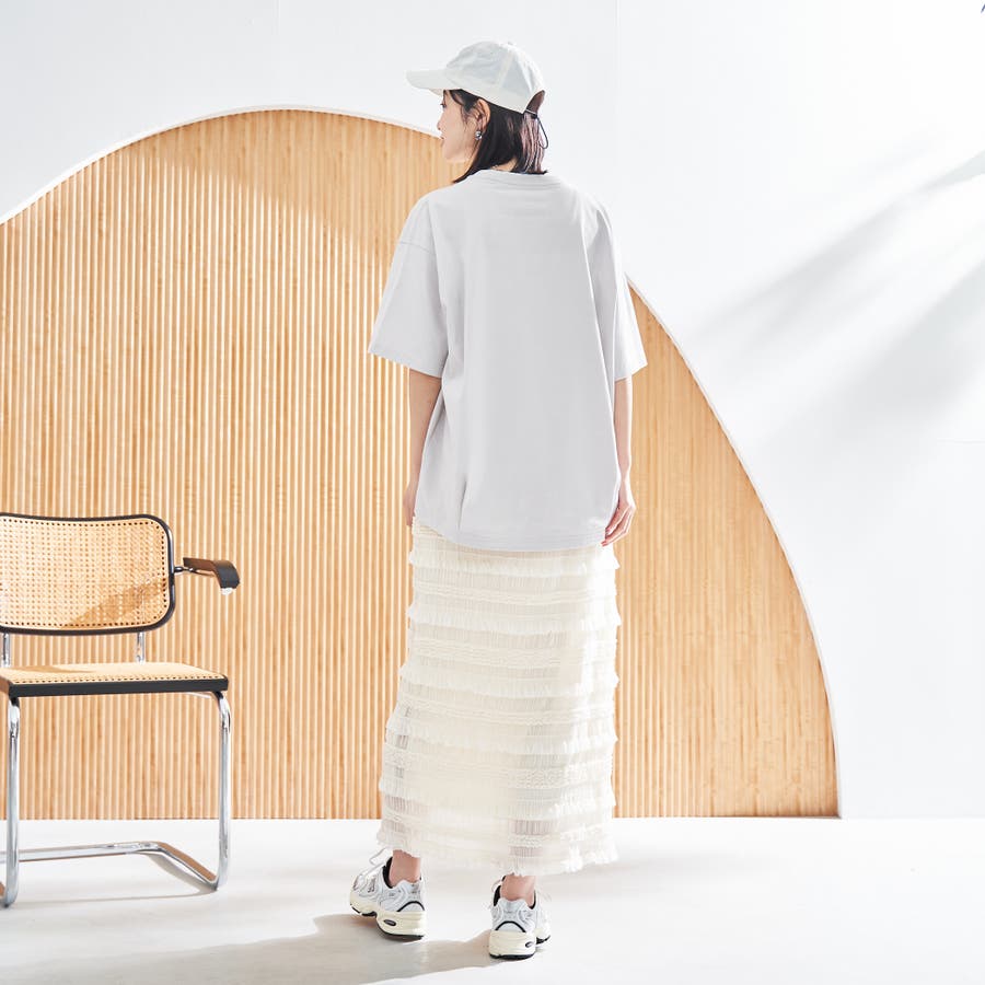 身体のラインを拾いにくく、ゆとりのあるフォルムがこなれ感を演出します。