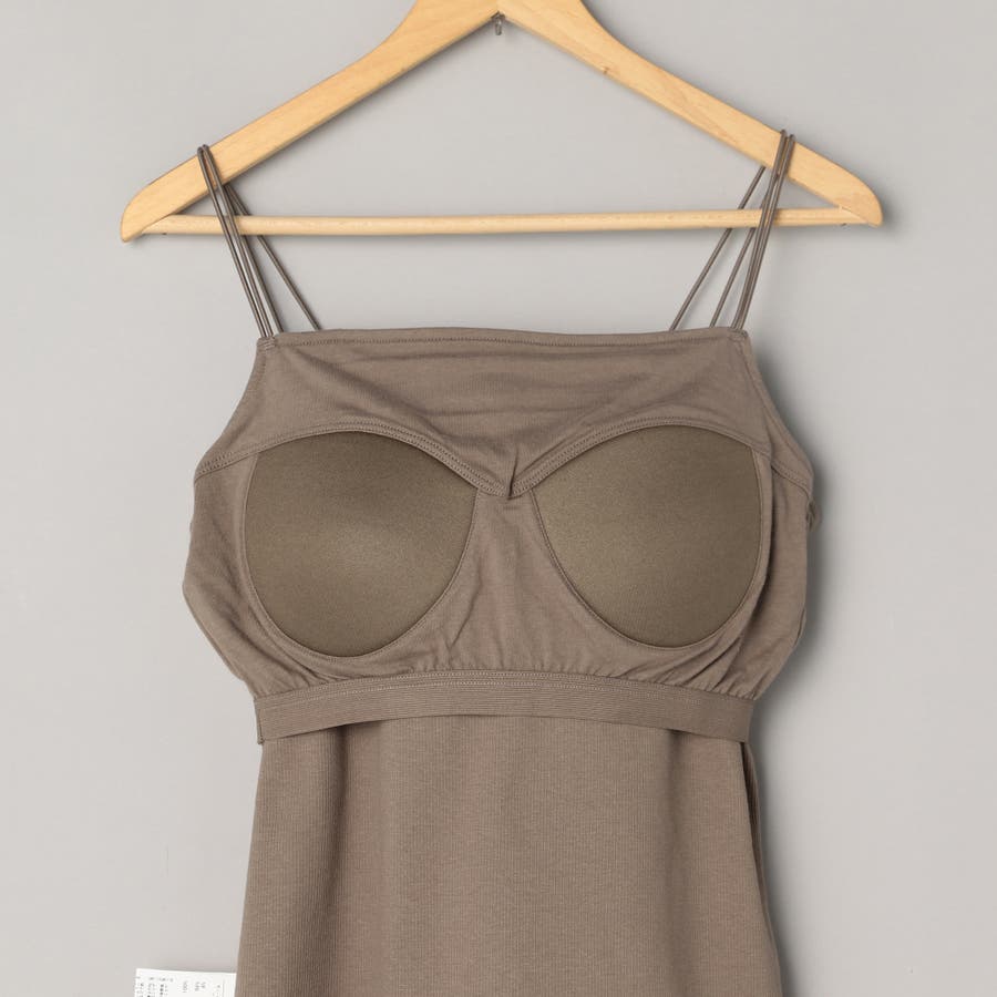 肌触りの良いリブ素材を使用したカップ付きキャミソール。