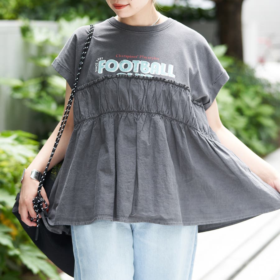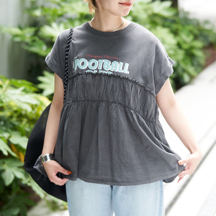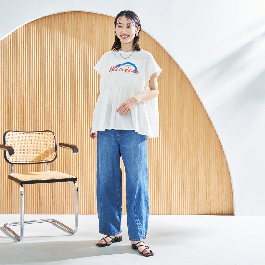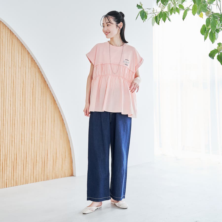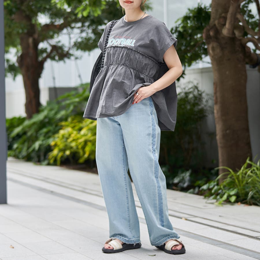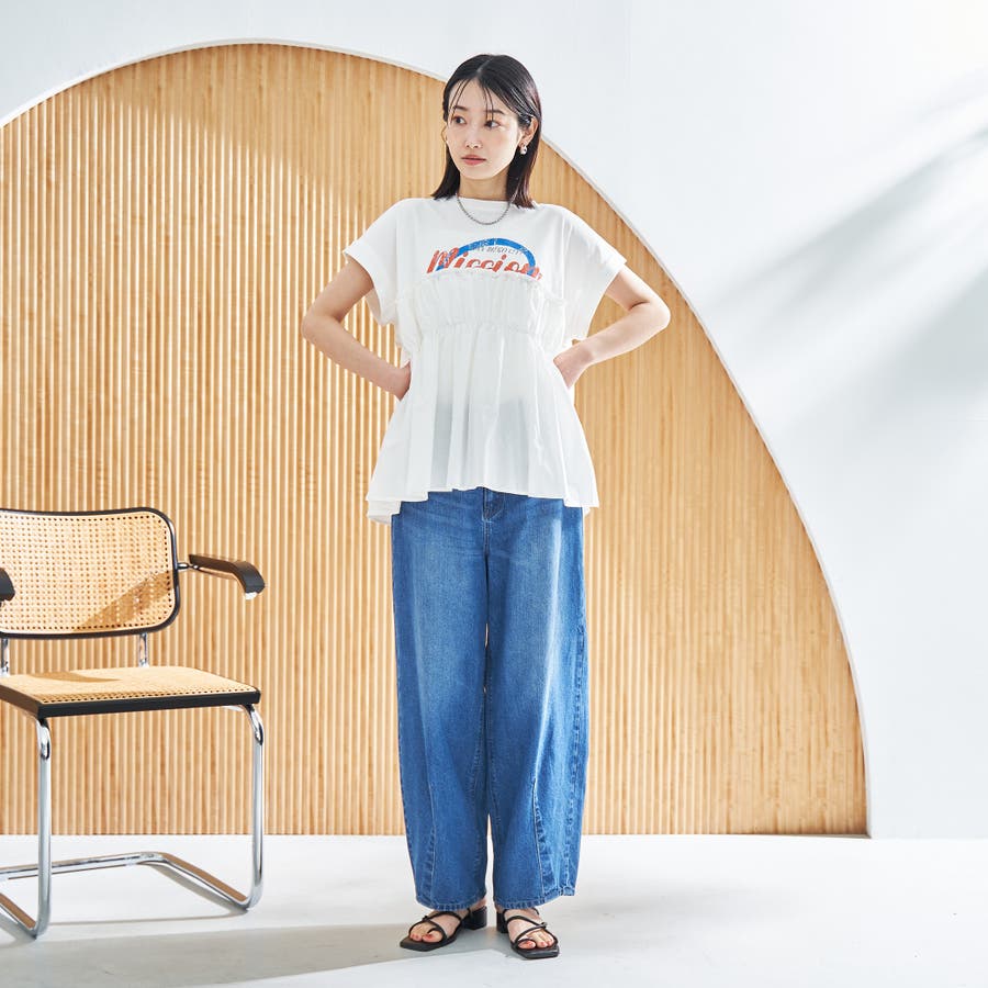 胸から下を布帛で切り替えたドッキングTシャツは、一枚でスタイルが決まる夏にぴったりのアイテム。