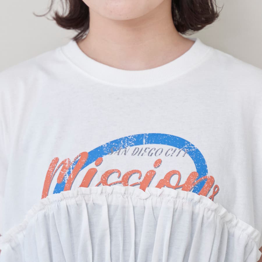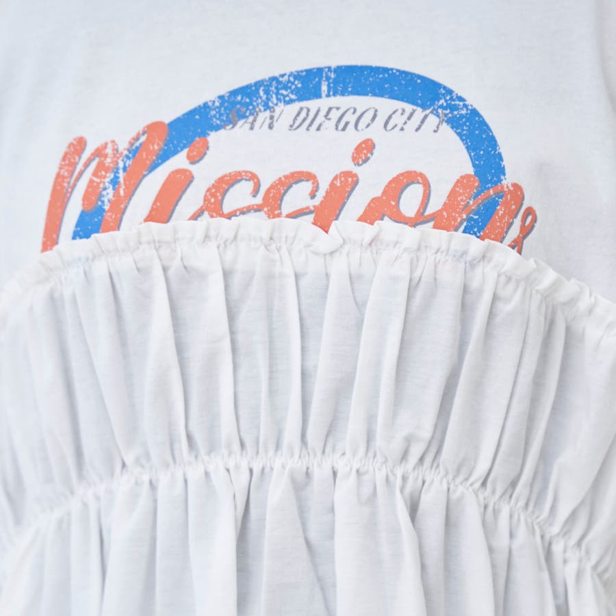 布帛ドッキングコットンロゴプリントT