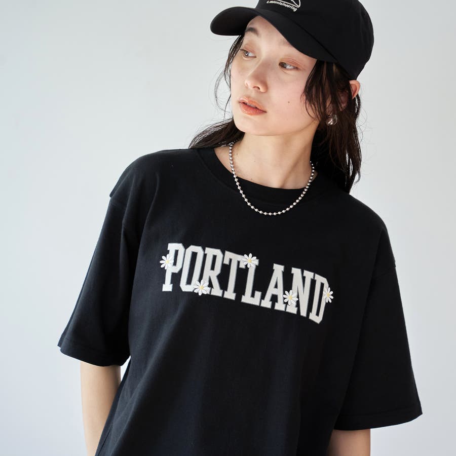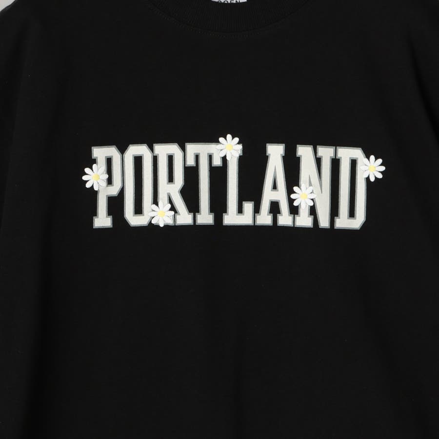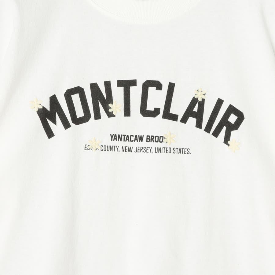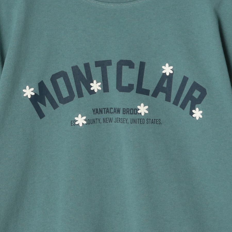 デザインは、カレッジテイストのグラフィックにお花の刺繍をあしらった、さりげないアクセントが光る一枚。