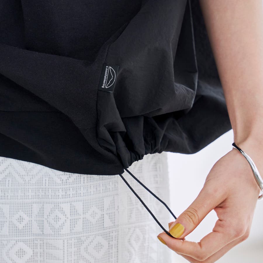 裾部分にはドローストリングを配置しており、シルエットのアレンジが可能。