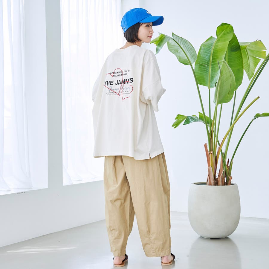 ゆるっとカジュアルスタイルにハートモチーフで可愛らしさをプラス