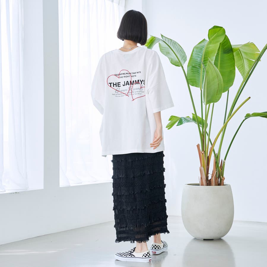 バックには可愛らしいハートモチーフのプリント入り。