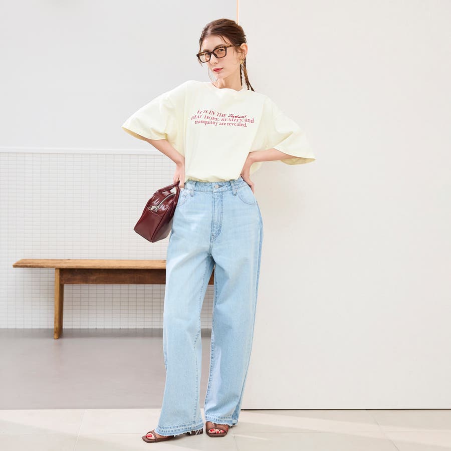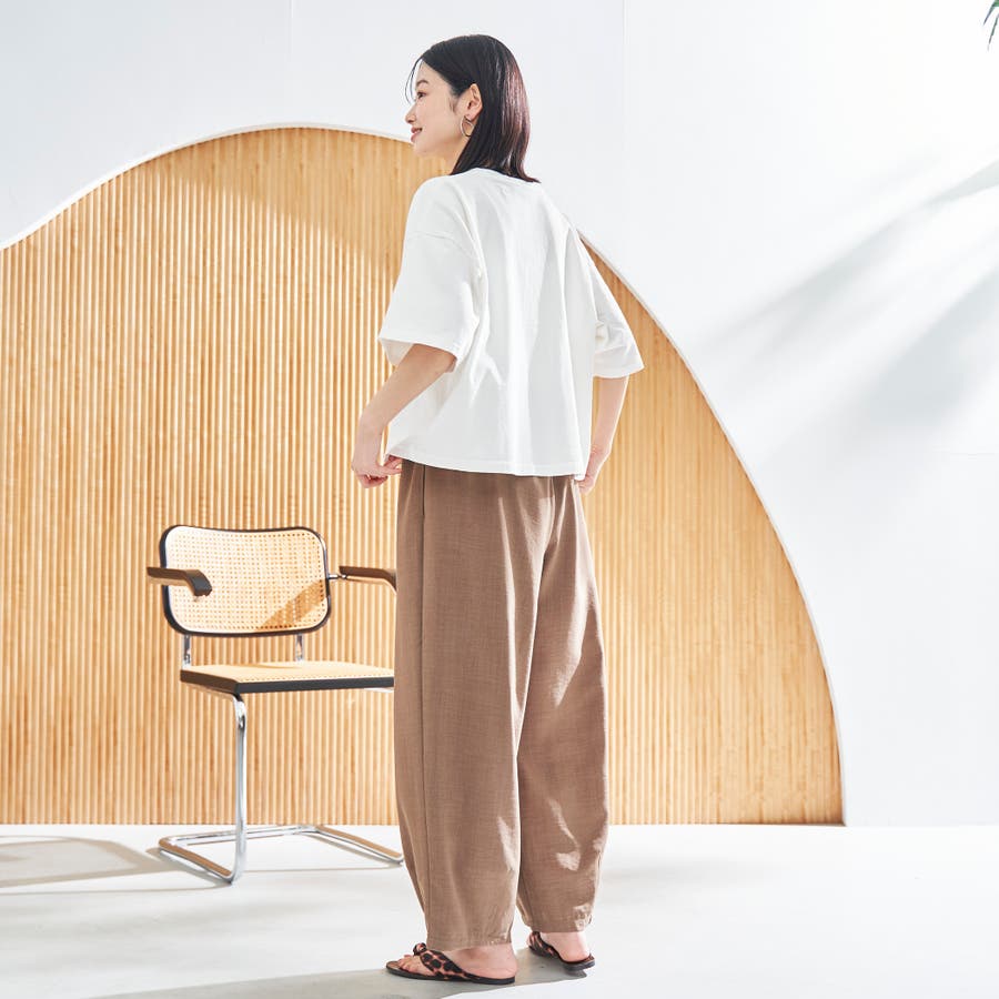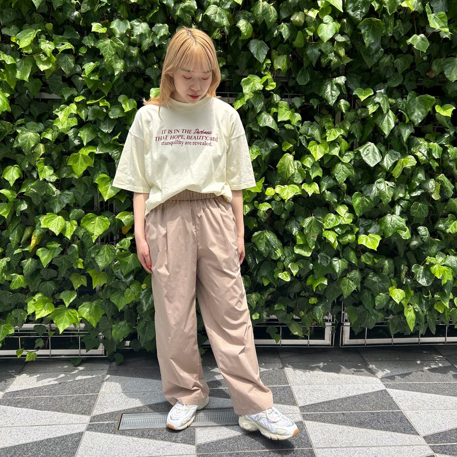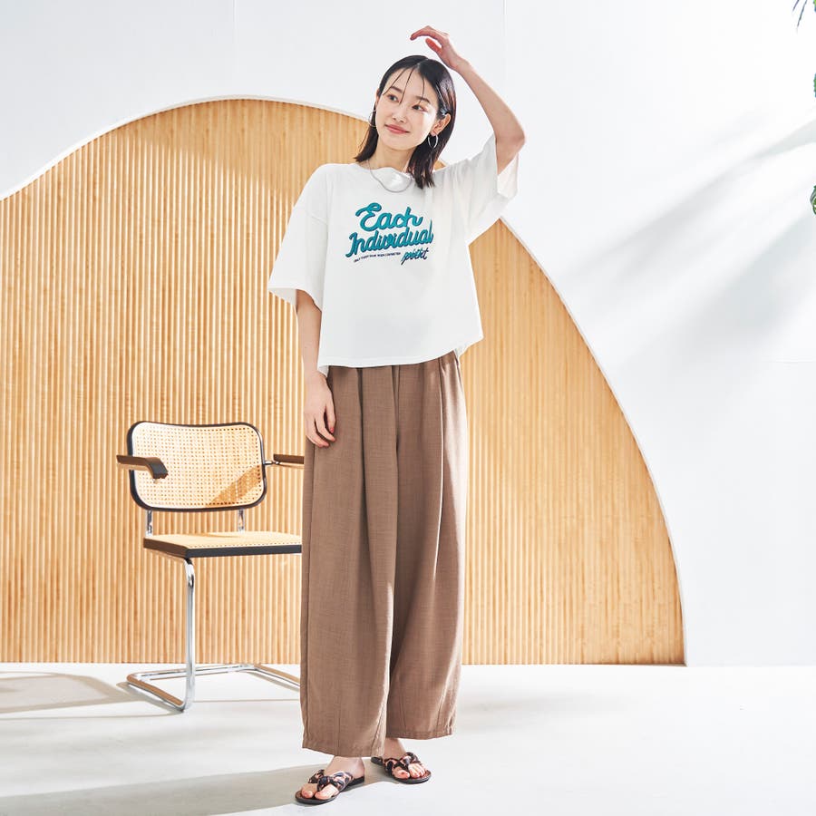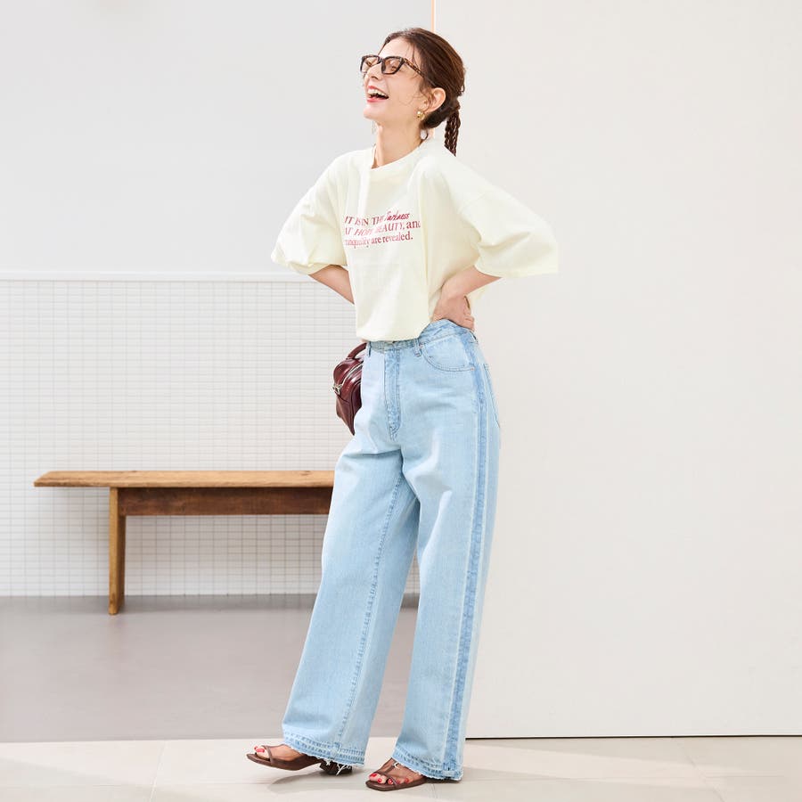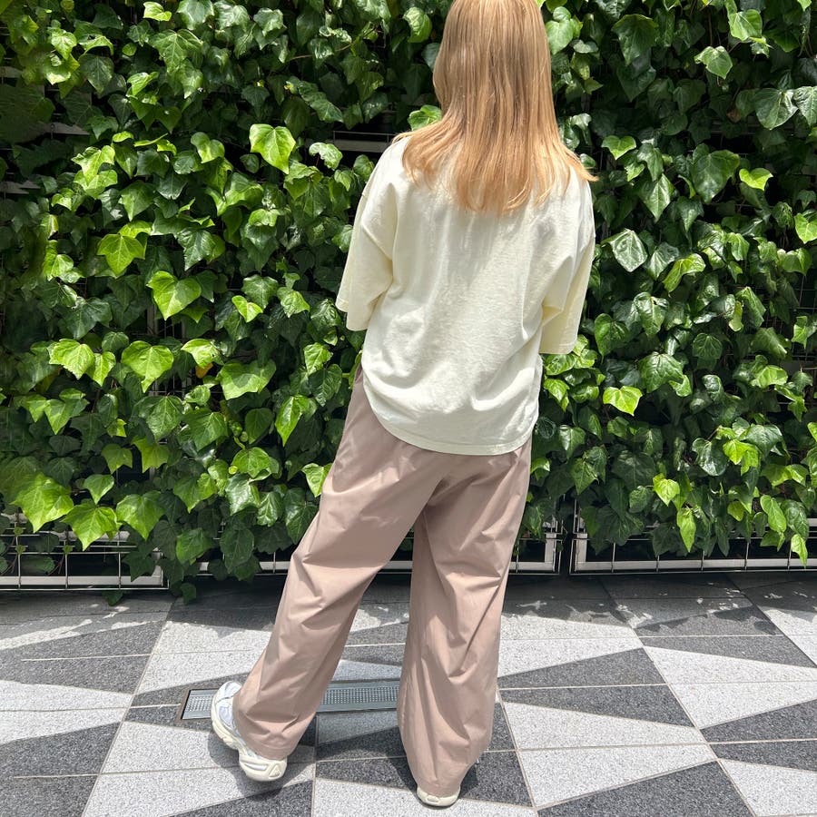 ●やや短めの丈感ながらも、身幅を広くとったワイドシルエットでバランスよく着こなせる一枚