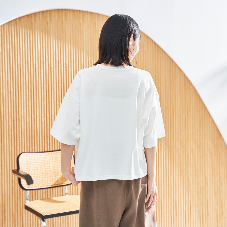 ●ドライな肌触りが魅力のシャリ感ある空紡糸を使用したショート丈Tシャツ