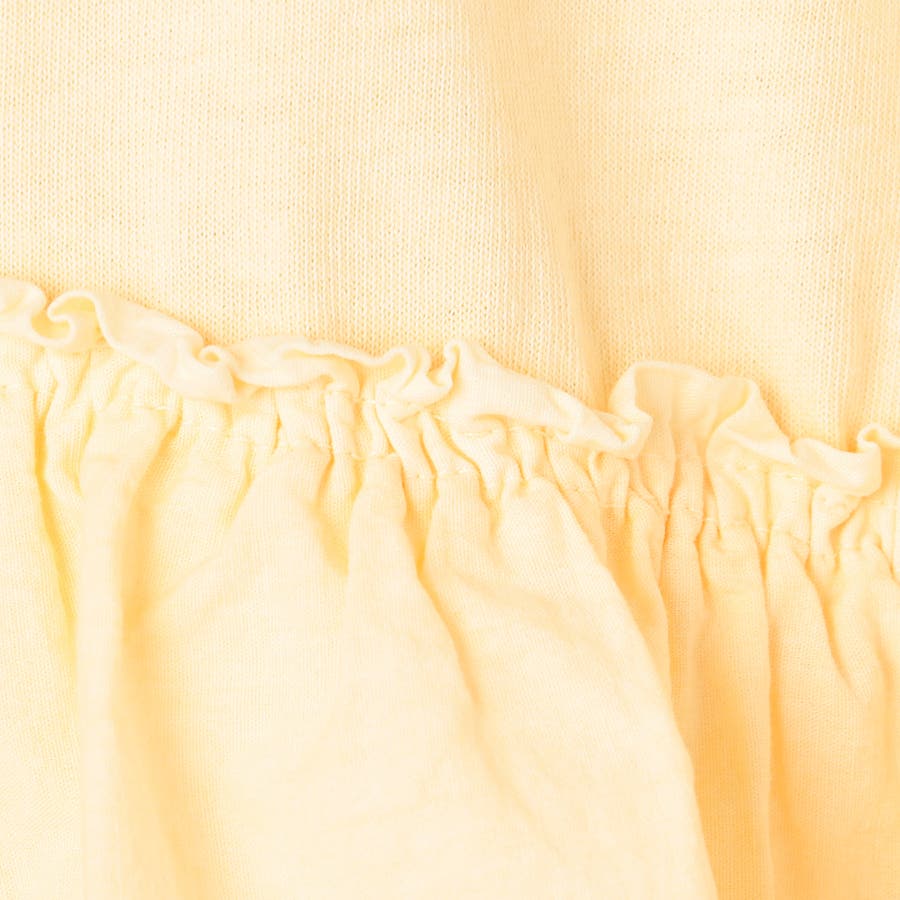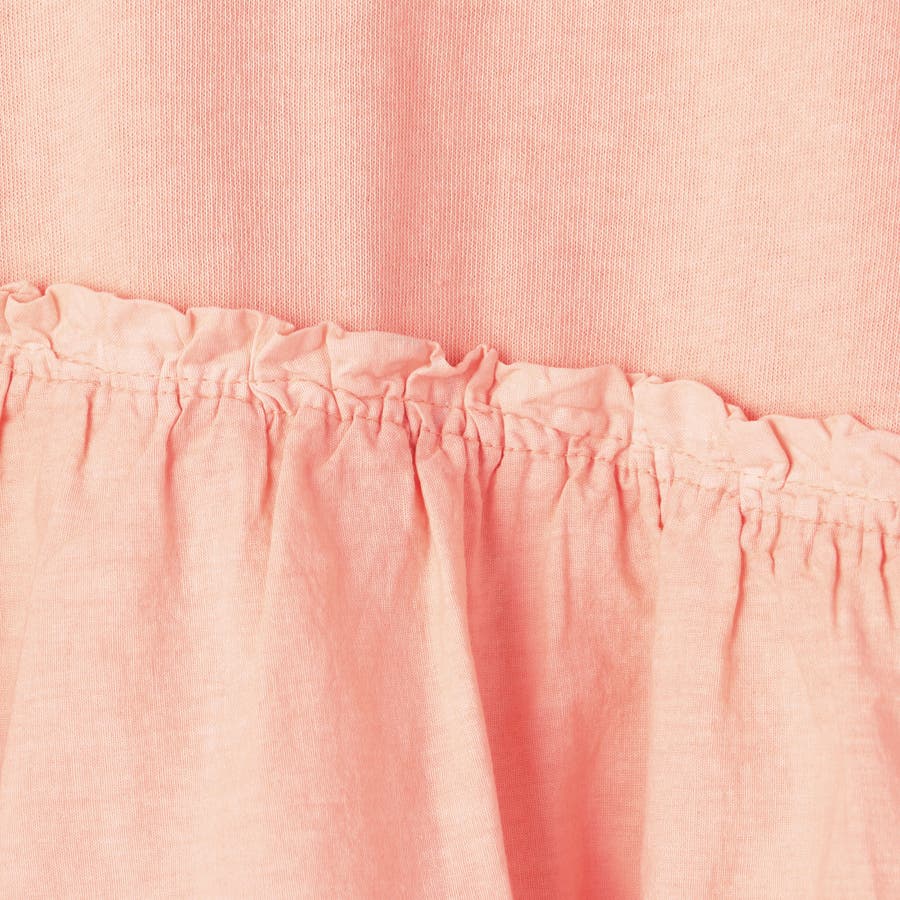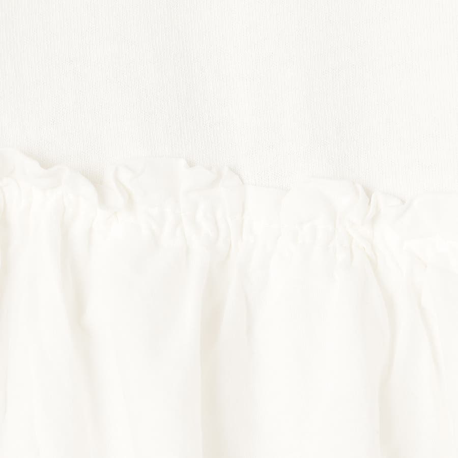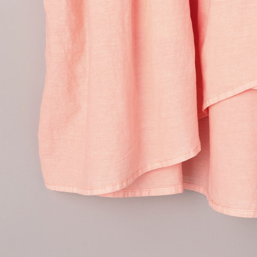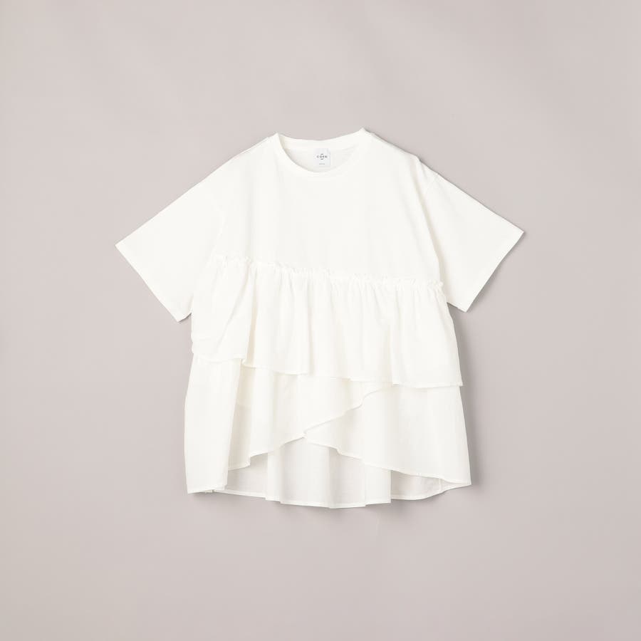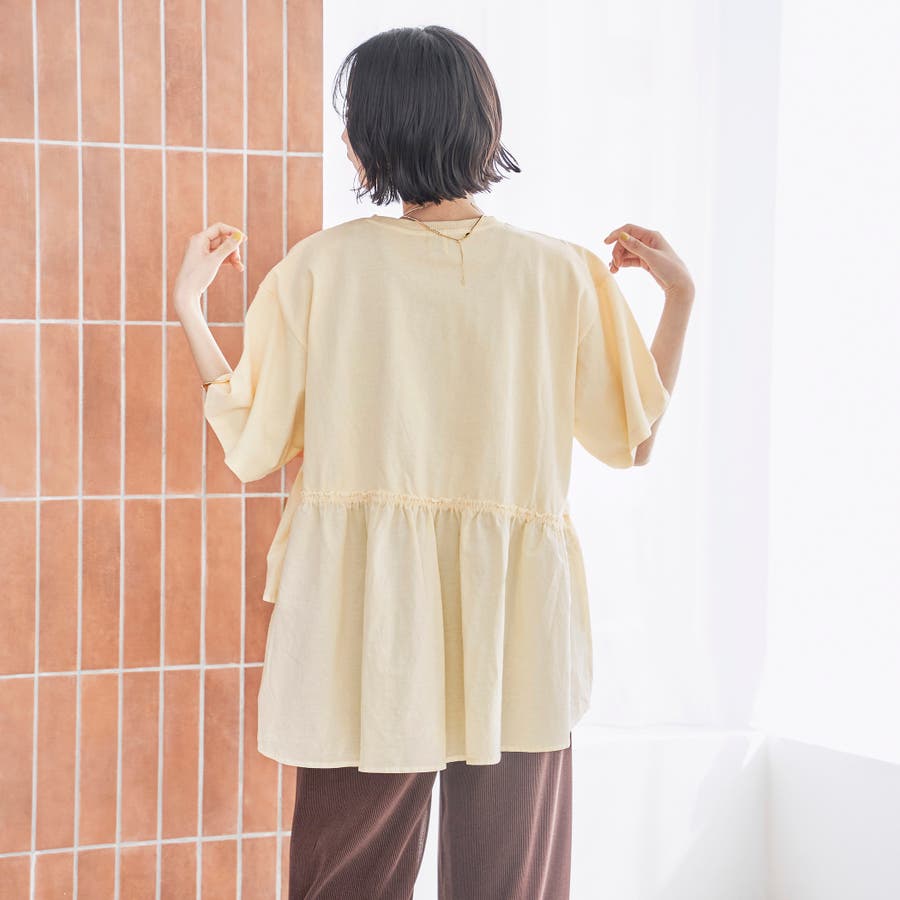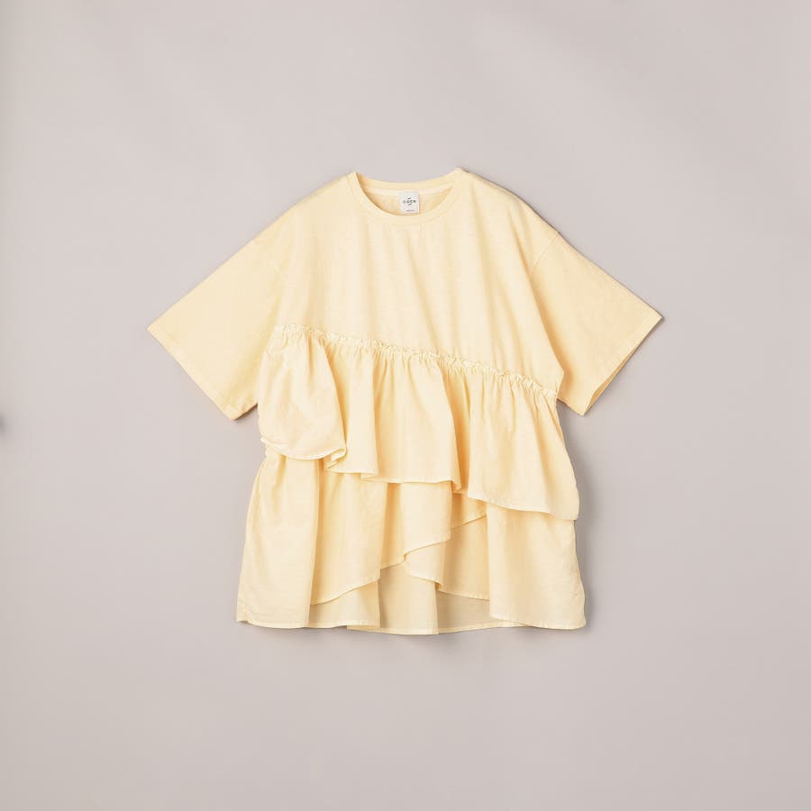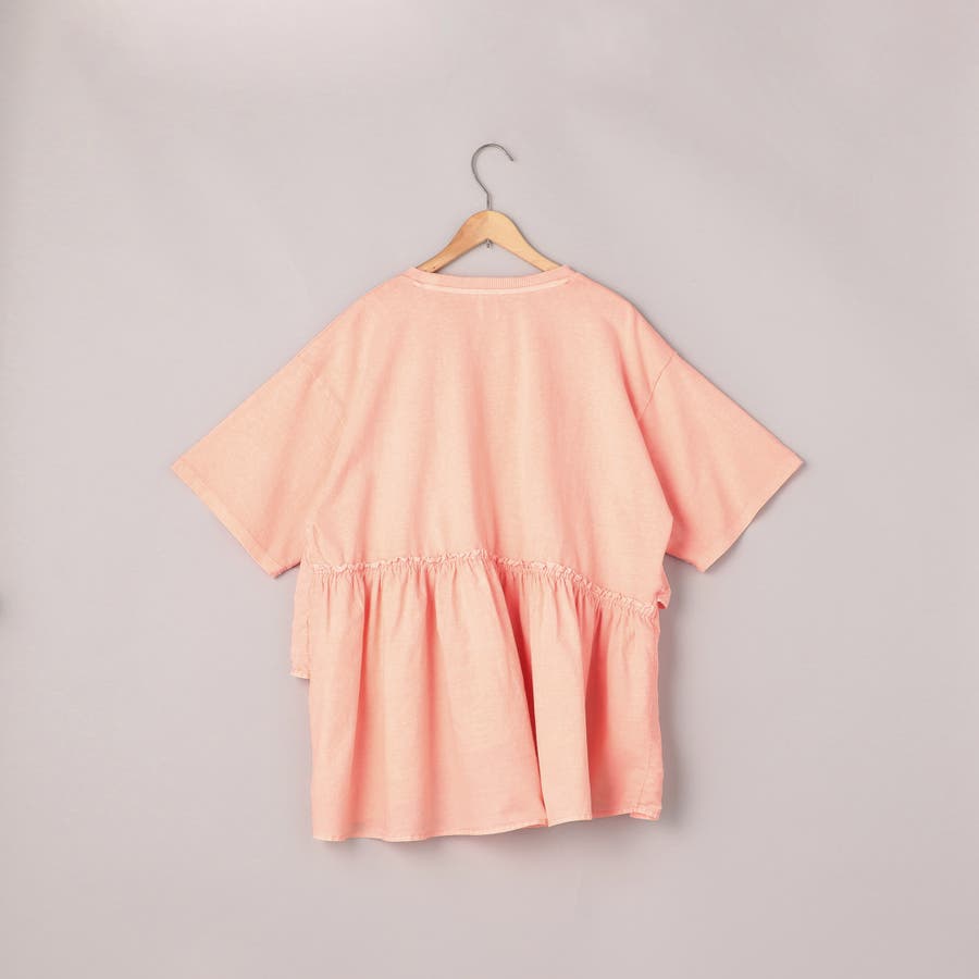 ヴィンテージ感のあるピグメント加工に、ふんわりとしたフリルがドッキングされたデザインで、大人カジュアルにほんのり甘さをプラス。