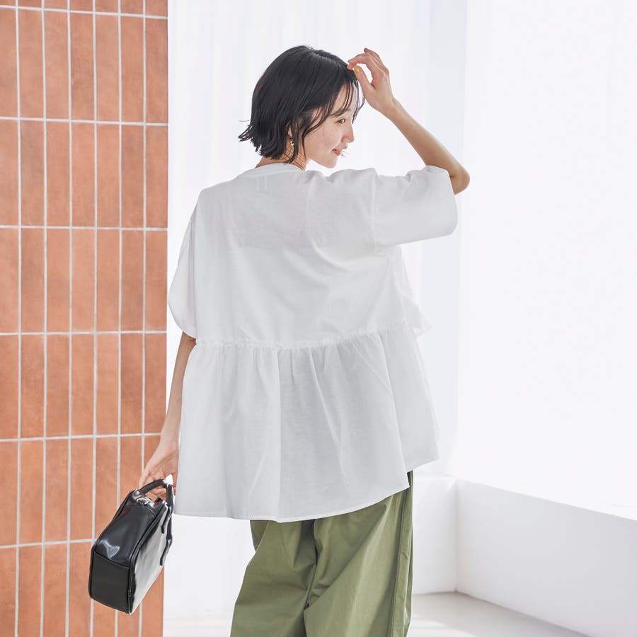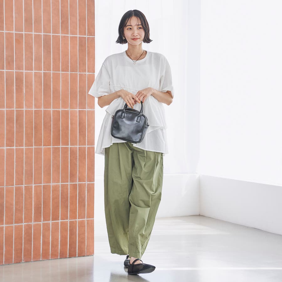 体型カバーもしつつ、パンツにもスカートにも合わせやすい万能な一枚です。