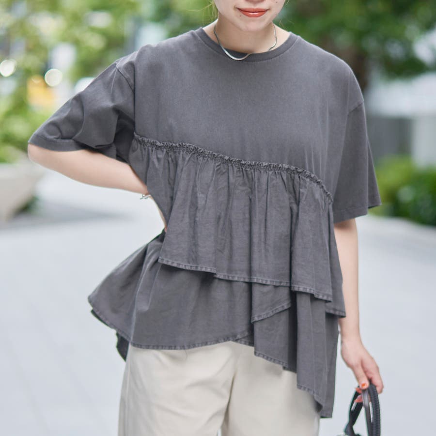 ・ピグメント加工×フリルの絶妙バランスで、甘すぎない大人可愛い仕上がり