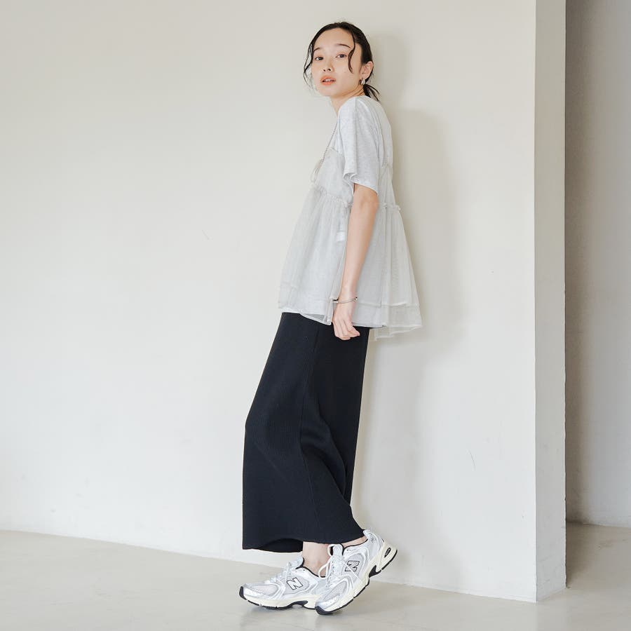キャミソールのふんわり広がるシルエットが、スタイリングにほんのり甘さを添えてくれます。