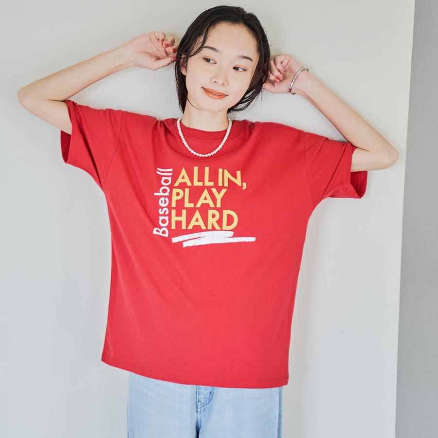 Tシャツにはレタードプリントを施し、ラフでカジュアルなムードをプラス。