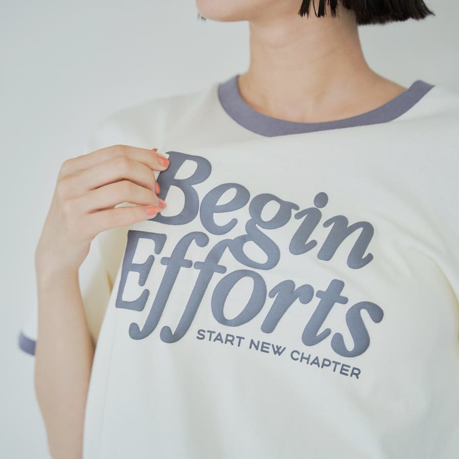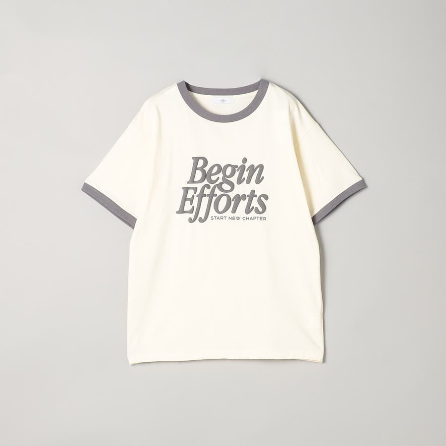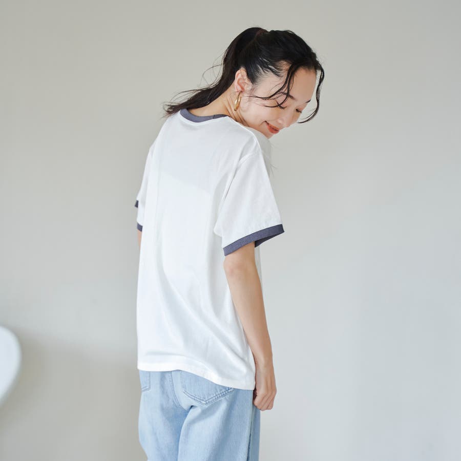 フロントに立体的な発泡ロゴをあしらったリンガーTシャツ。