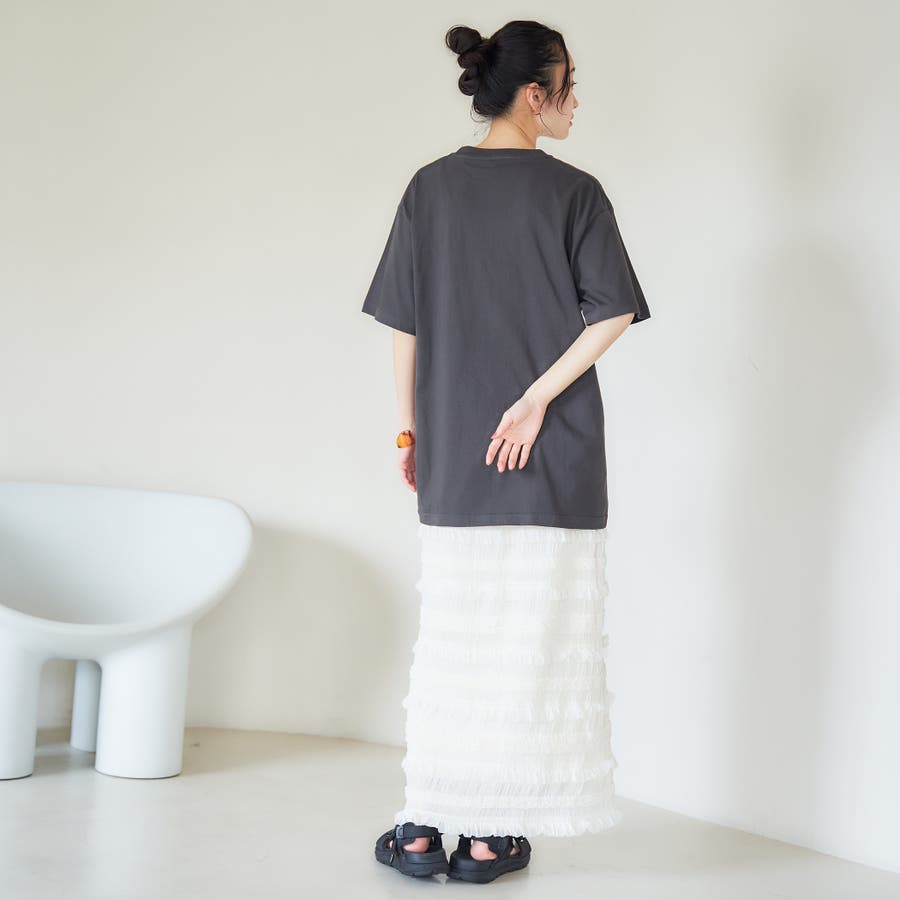 ゆったりとしたシルエットで体のラインを拾わず、リラックス感がありつつも大人っぽく着られる一枚です。