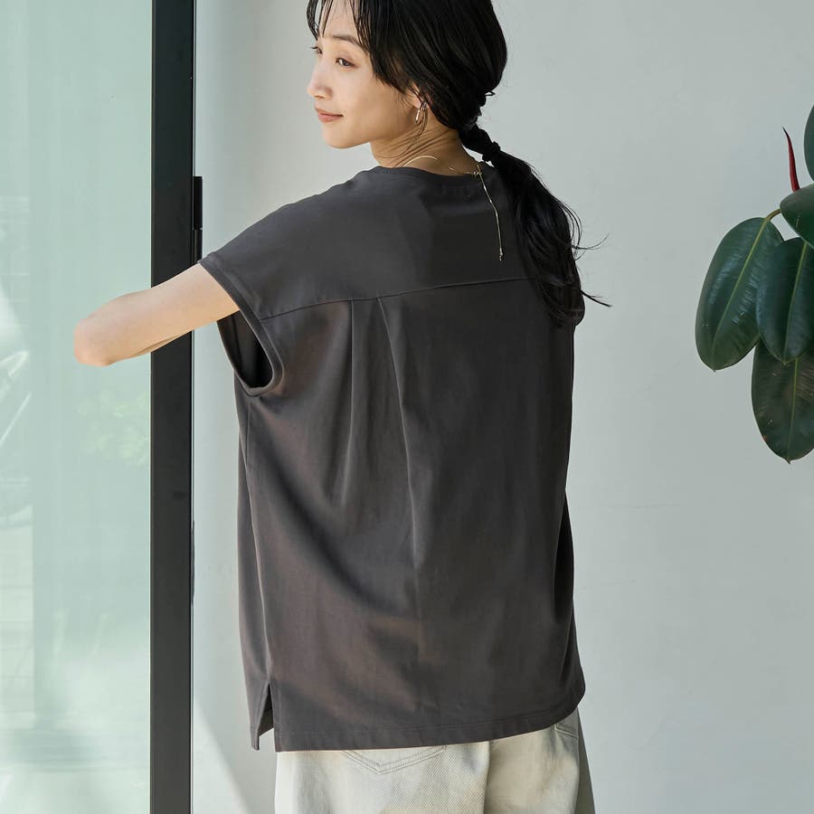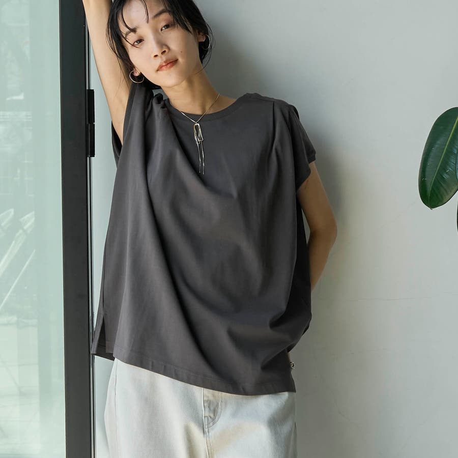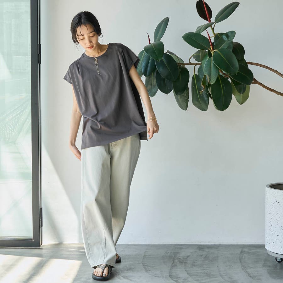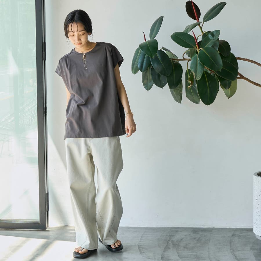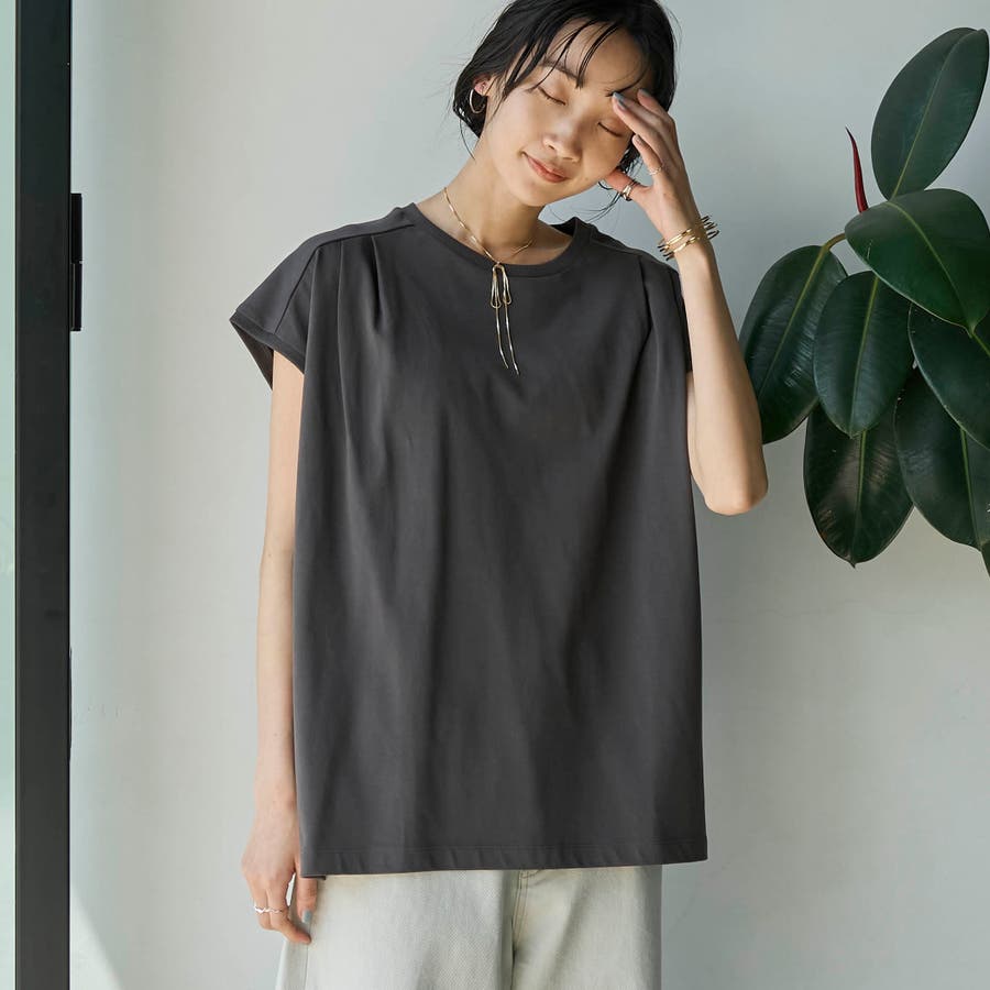 洗練された無地デザインで仕上げたフロントタックTEE。