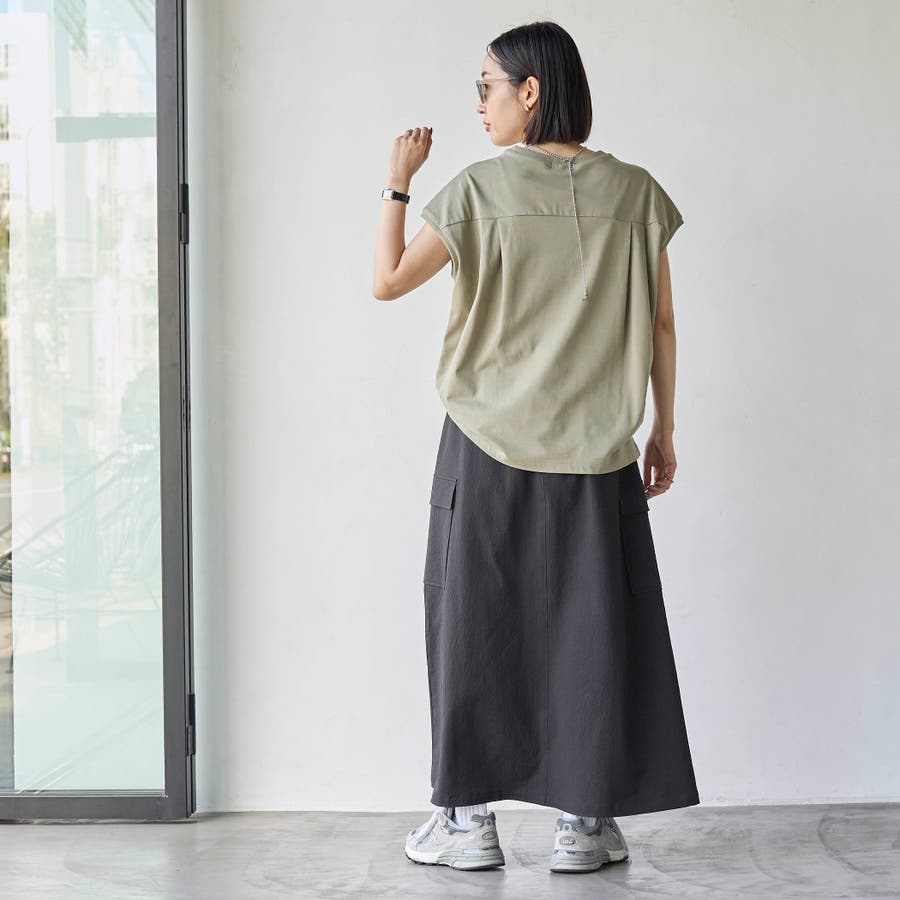 フロント脇あたりにタックをデザインし、サイドスリットが程よい抜けを演出。