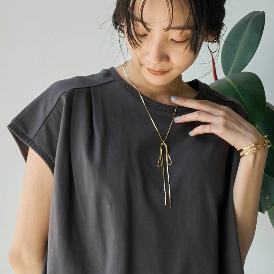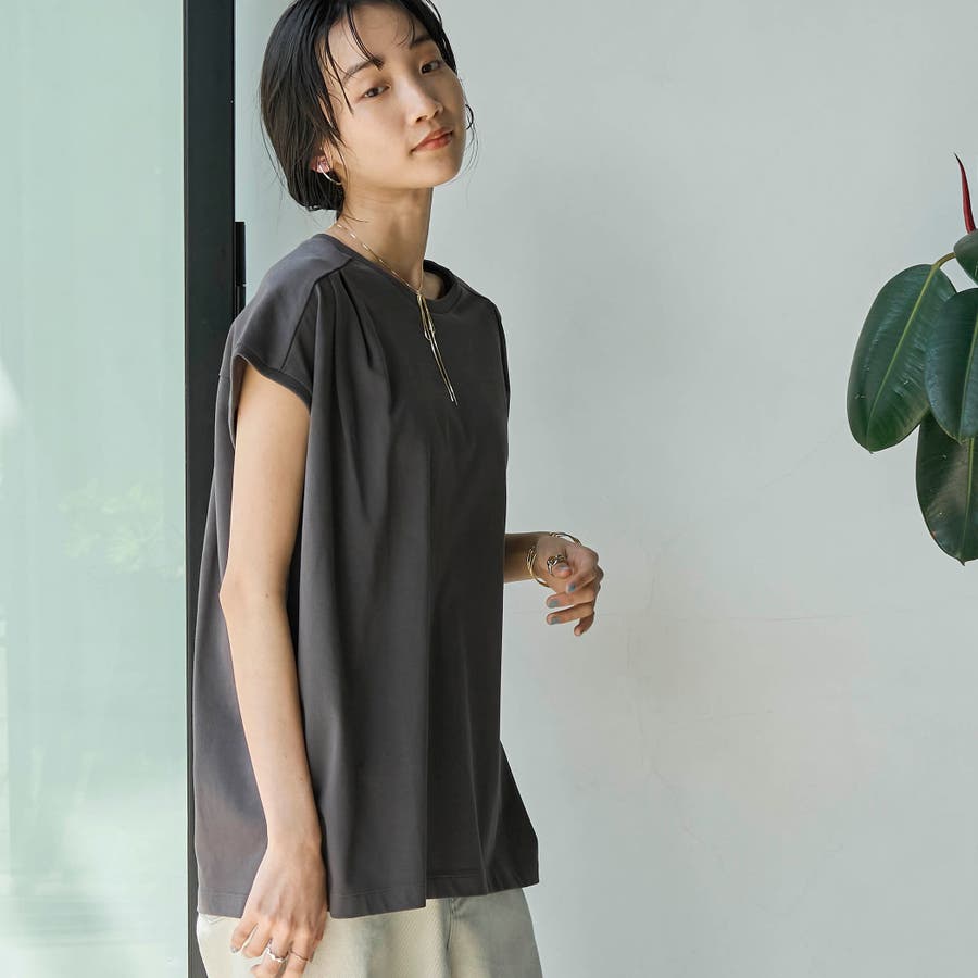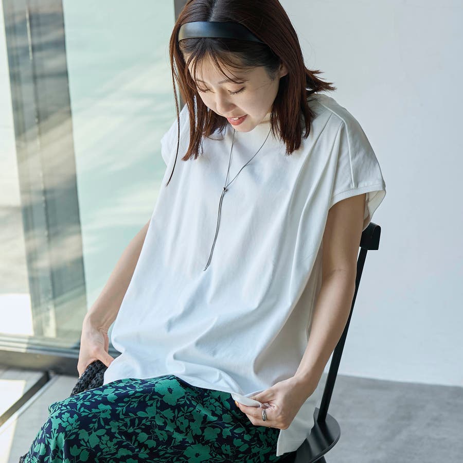 うでラインをすっきりと見せるフレンチスリーブで仕上げ、夏場でもヘルシーな肌見せが叶います。