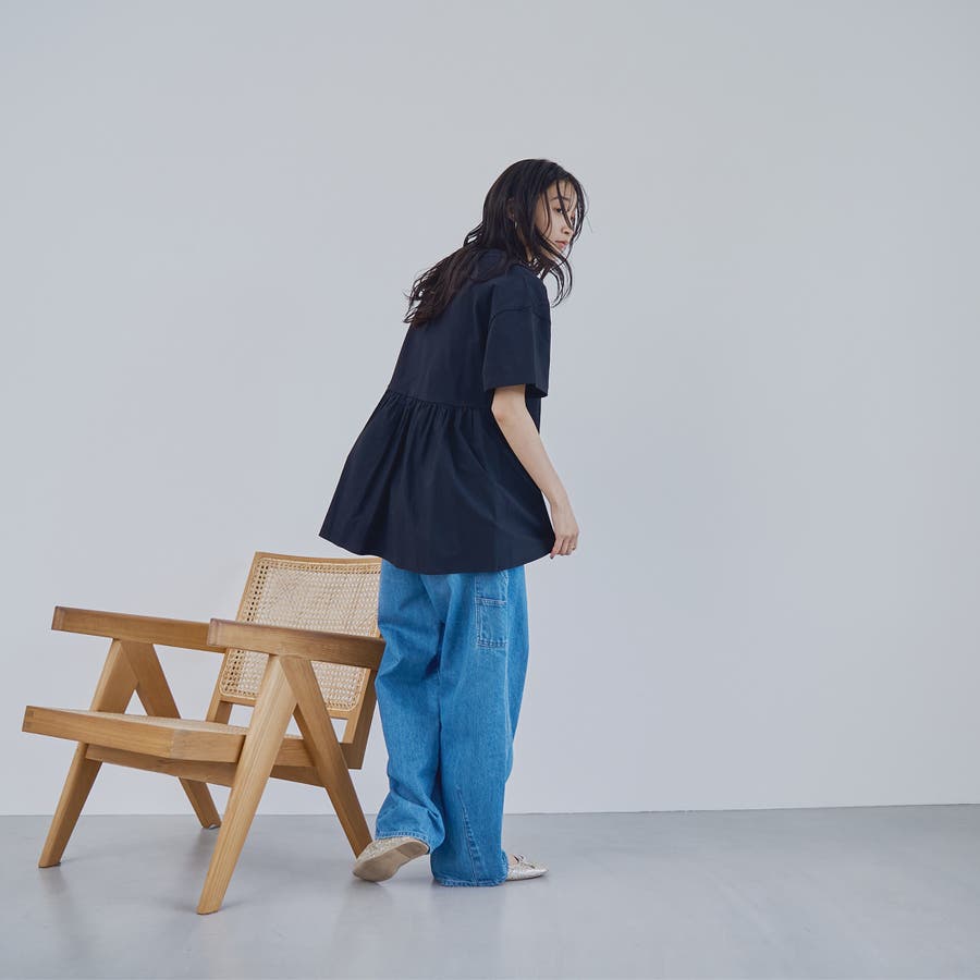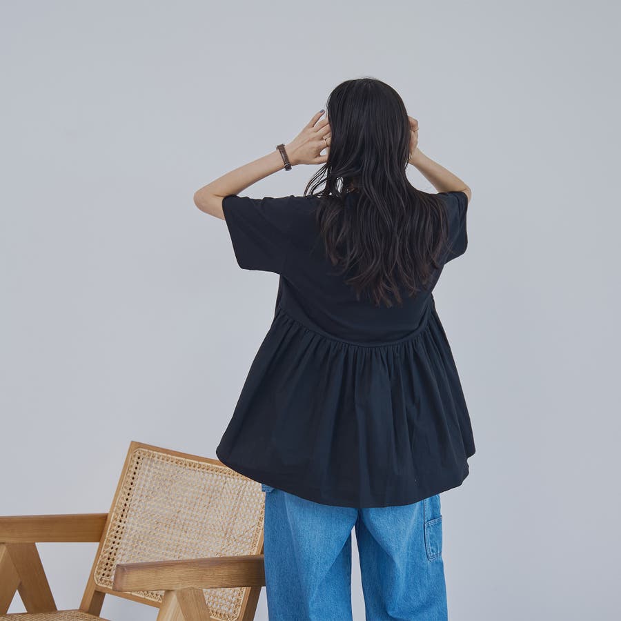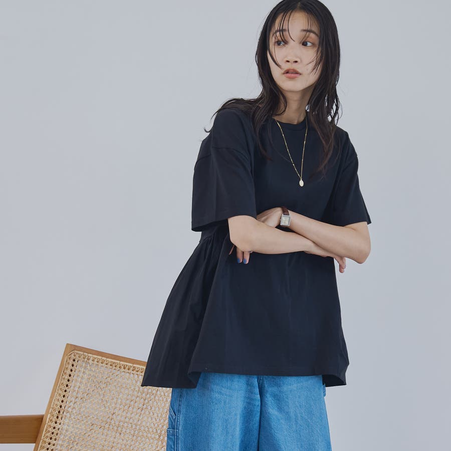 布帛のバックペプラムでガーリーな雰囲気をプラスしたTシャツ。