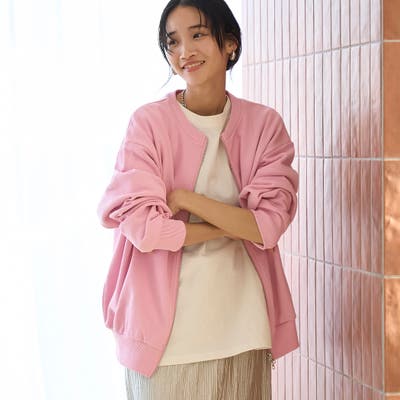 しっかりとした密度の裏毛を使用した、春らしい色合いのジップアップカーディガンです。