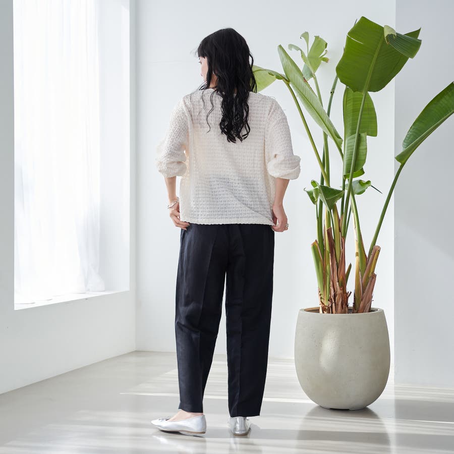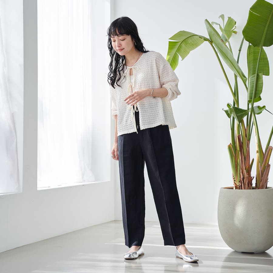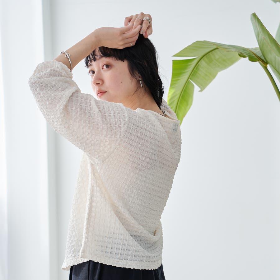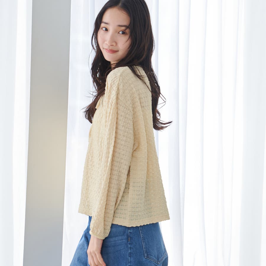 カーディガンタイプのカットソーなので、軽やかな着心地でさっと羽織れるのがポイント。