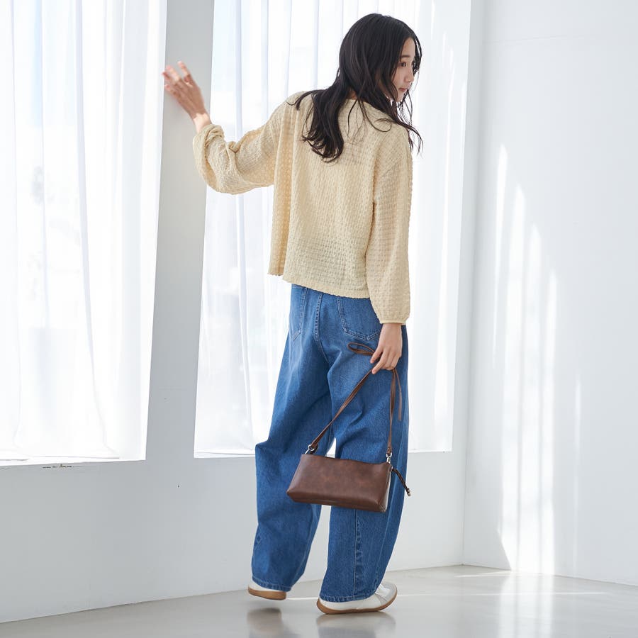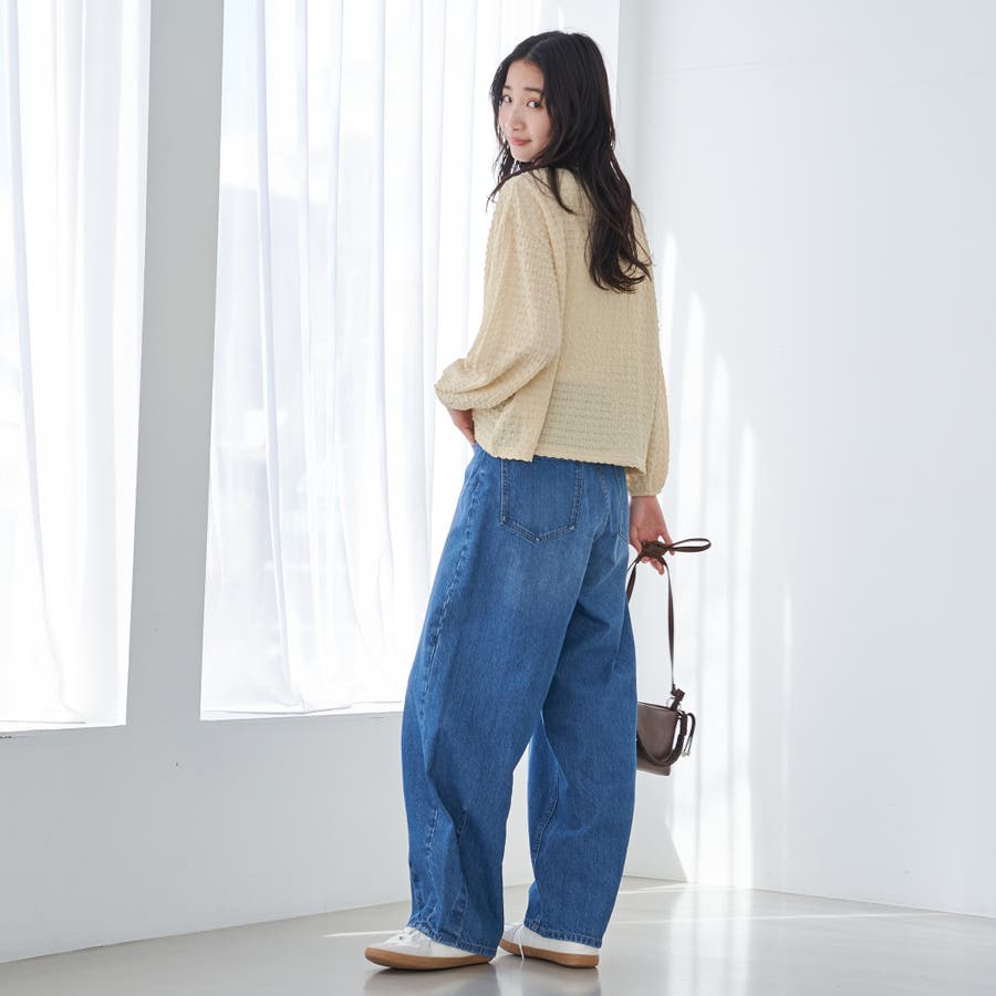 カジュアルなボトムスと相性がよく、デニムやワイドパンツ、スカートなどさまざまなアイテムと合わせやすい万能な一枚です。