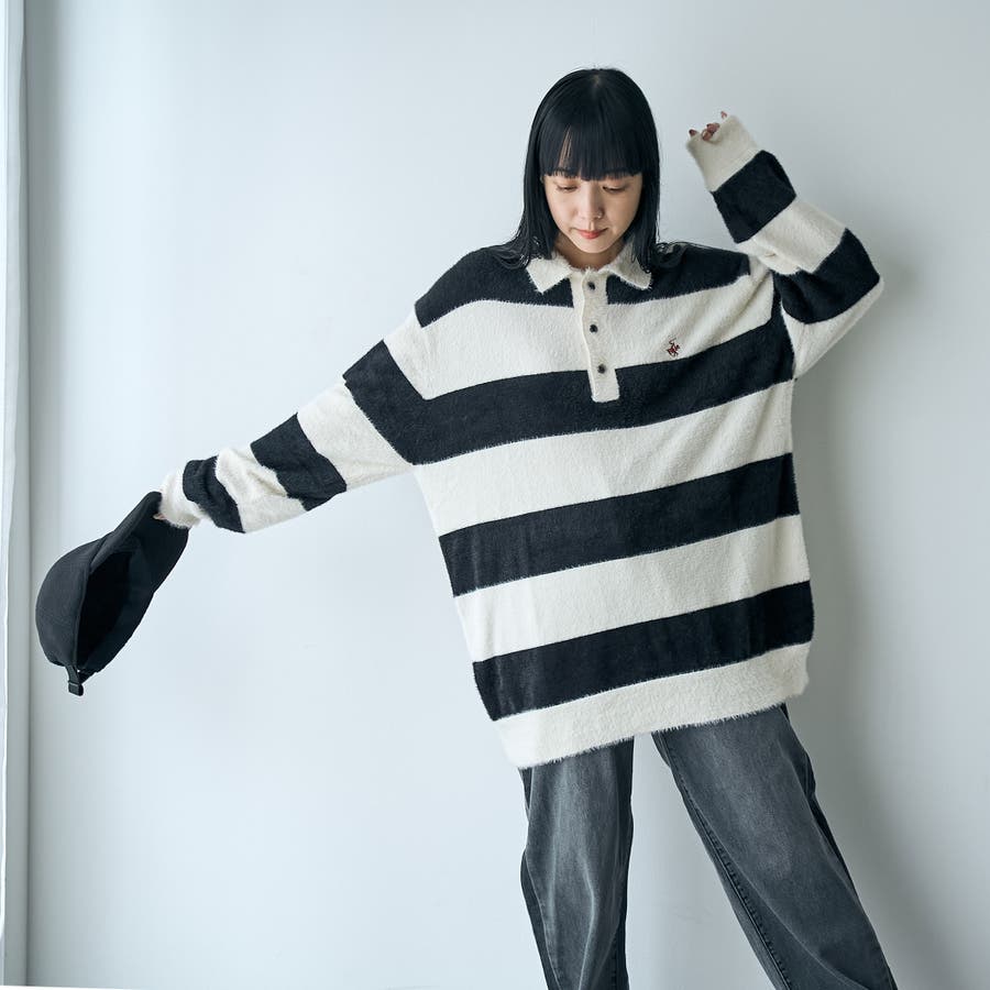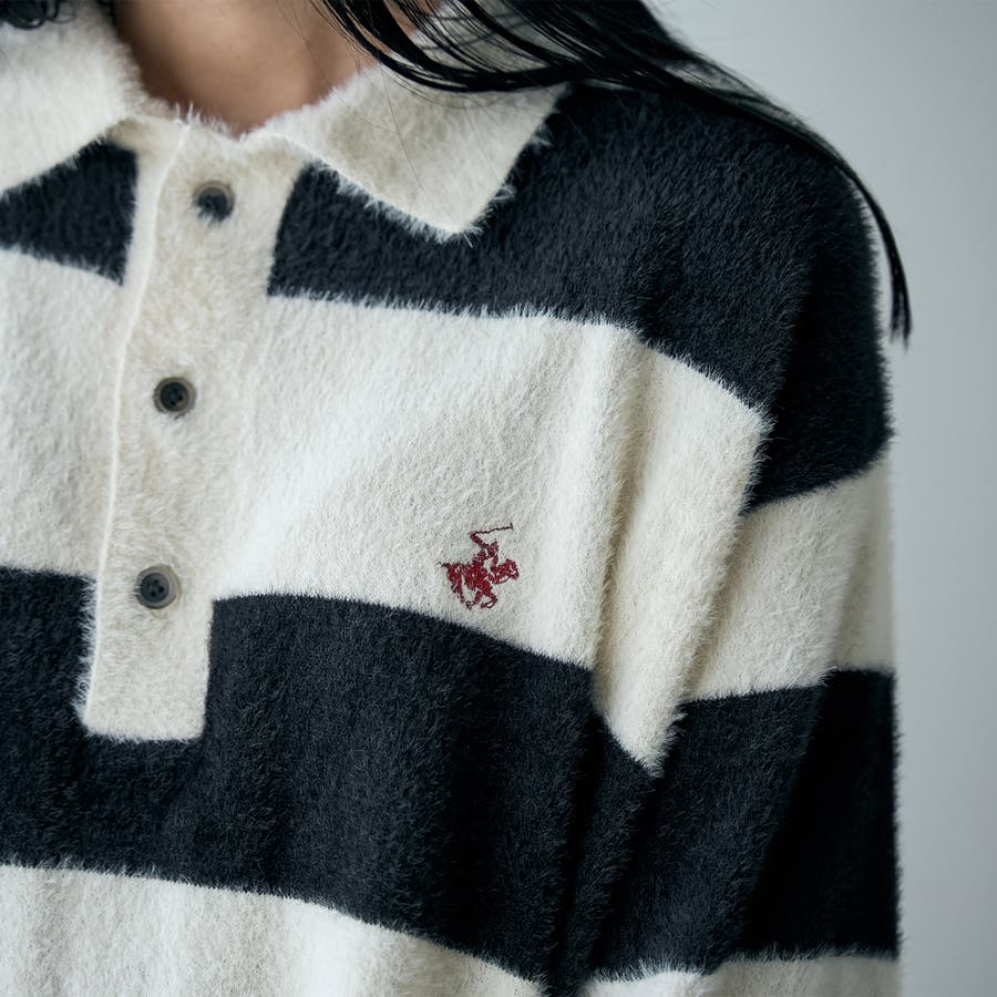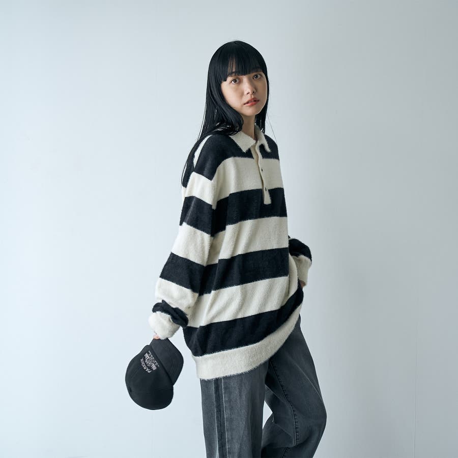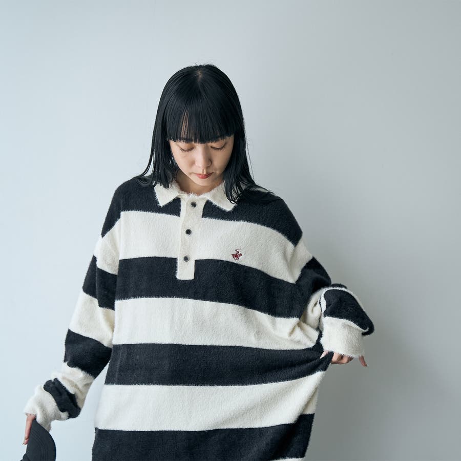 秋冬らしい温もりを加えるふわふわシャギーニットポロシャツ