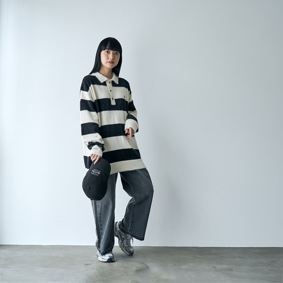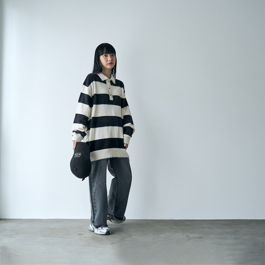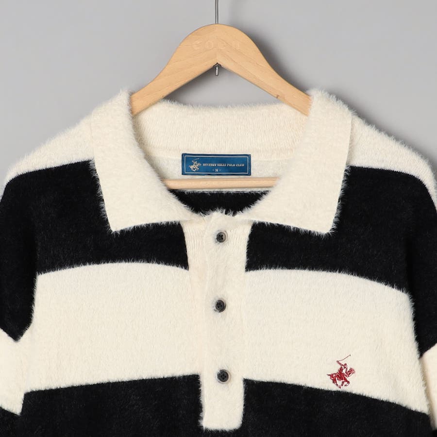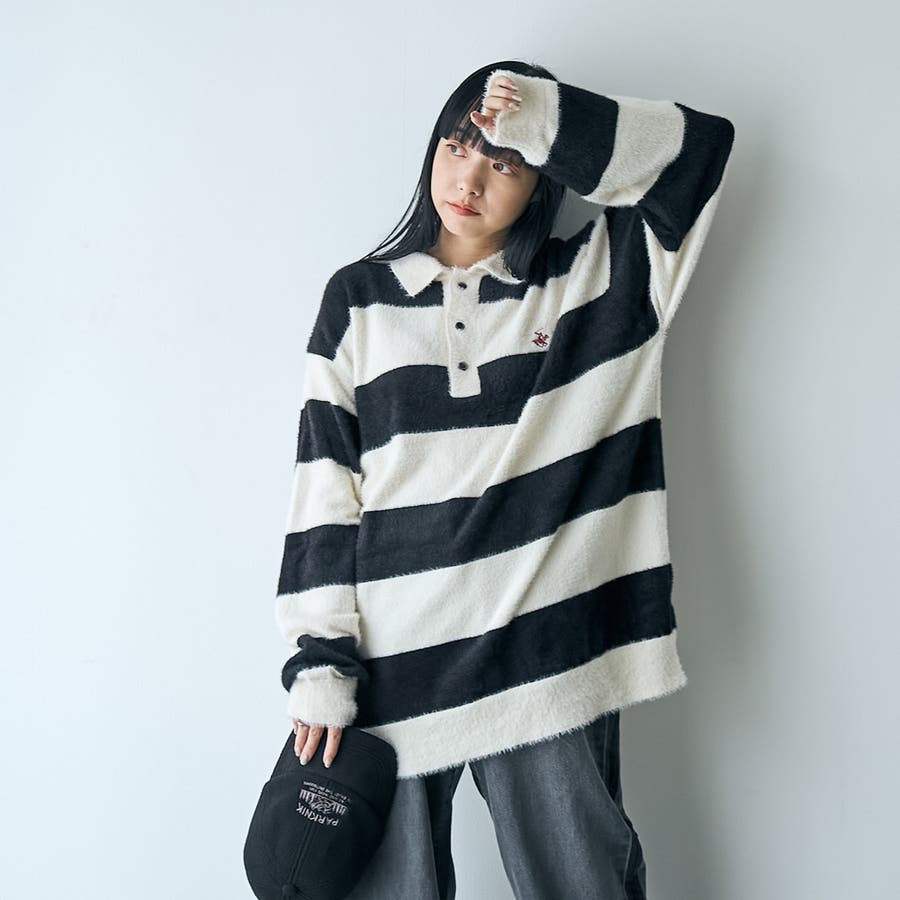 秋冬らしい温もりを加えるふわふわシャギーニットポロシャツ