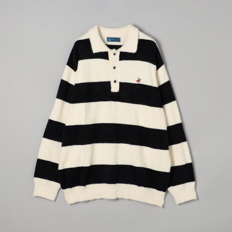ウォーム感があるシャギーニット素材の長袖ポロシャツ。