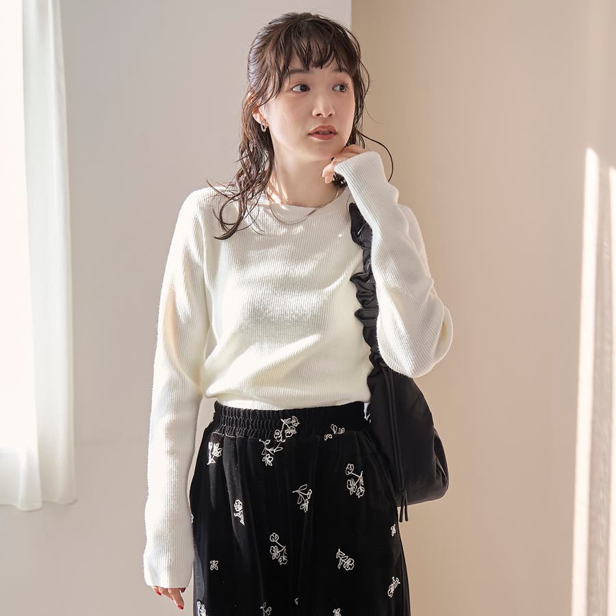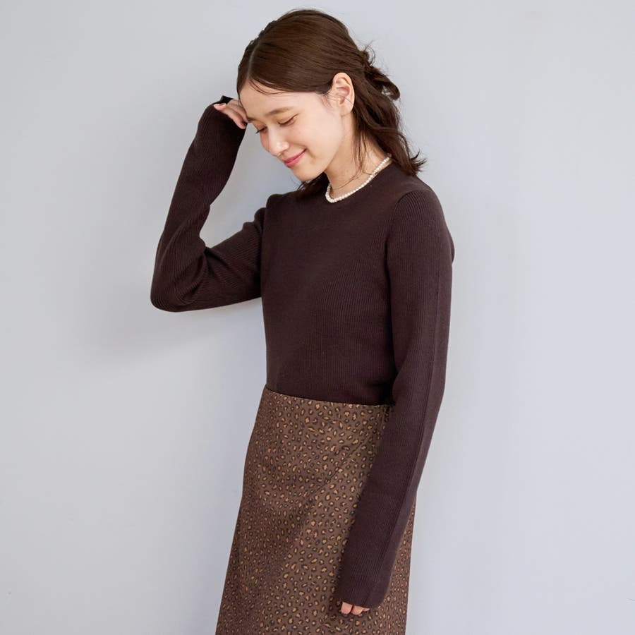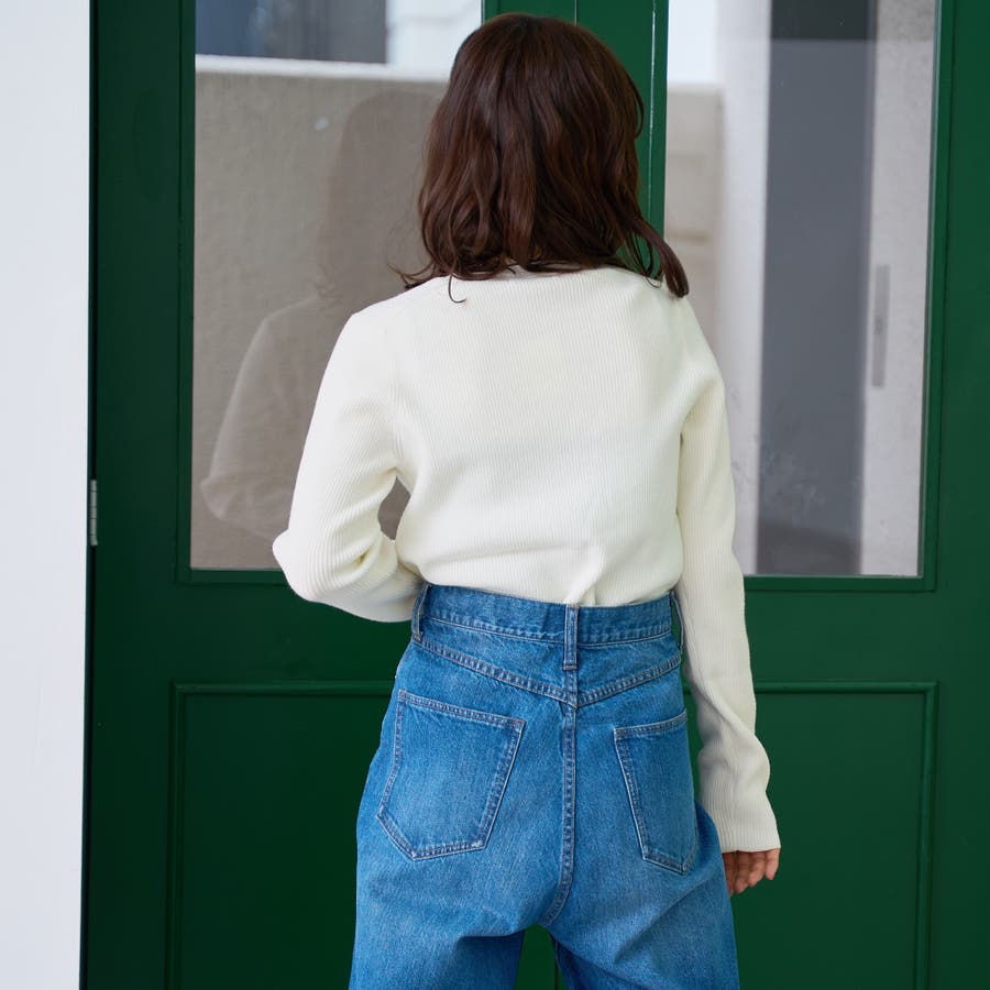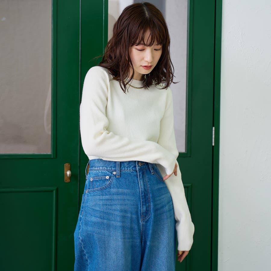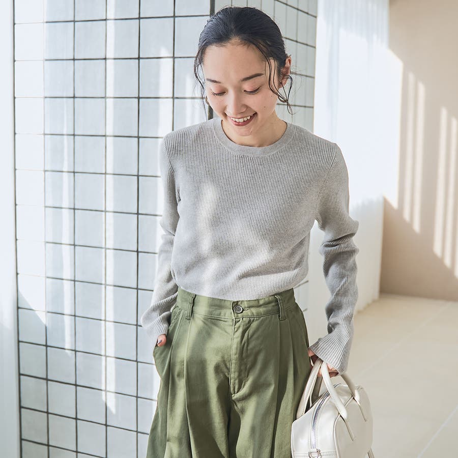 リブ仕様がさりげなく細見えをサポートし、インナーや一枚着でも着回しやすいデザイン。