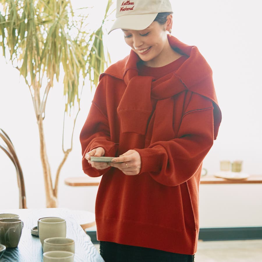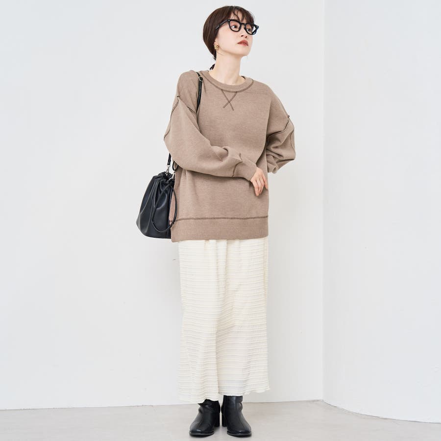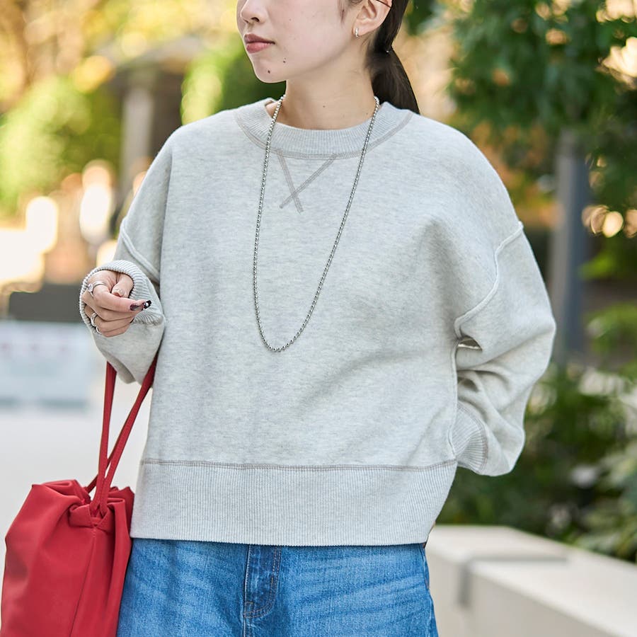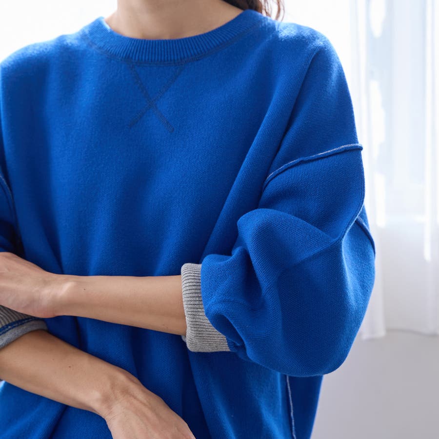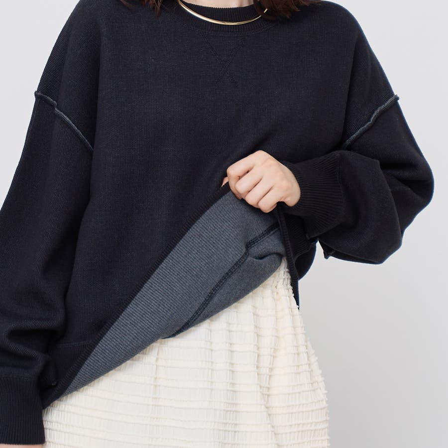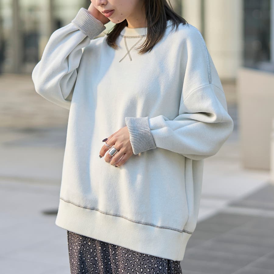 スウェットのような柔らかさとニットならではの表情を併せ持った一枚。