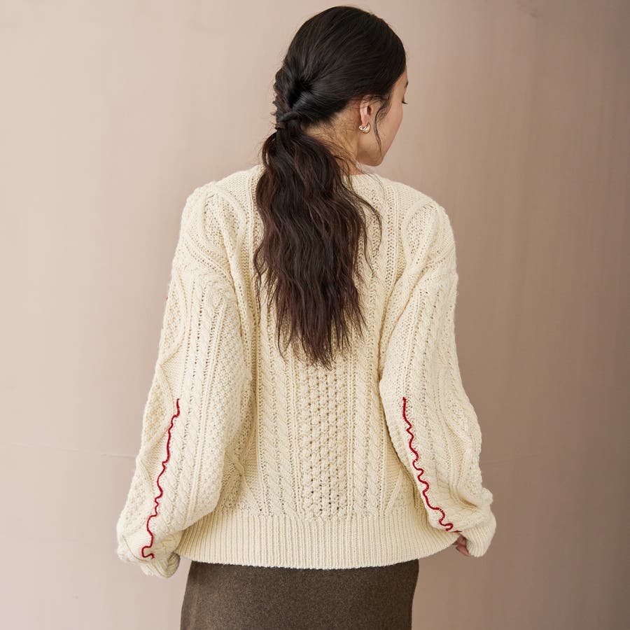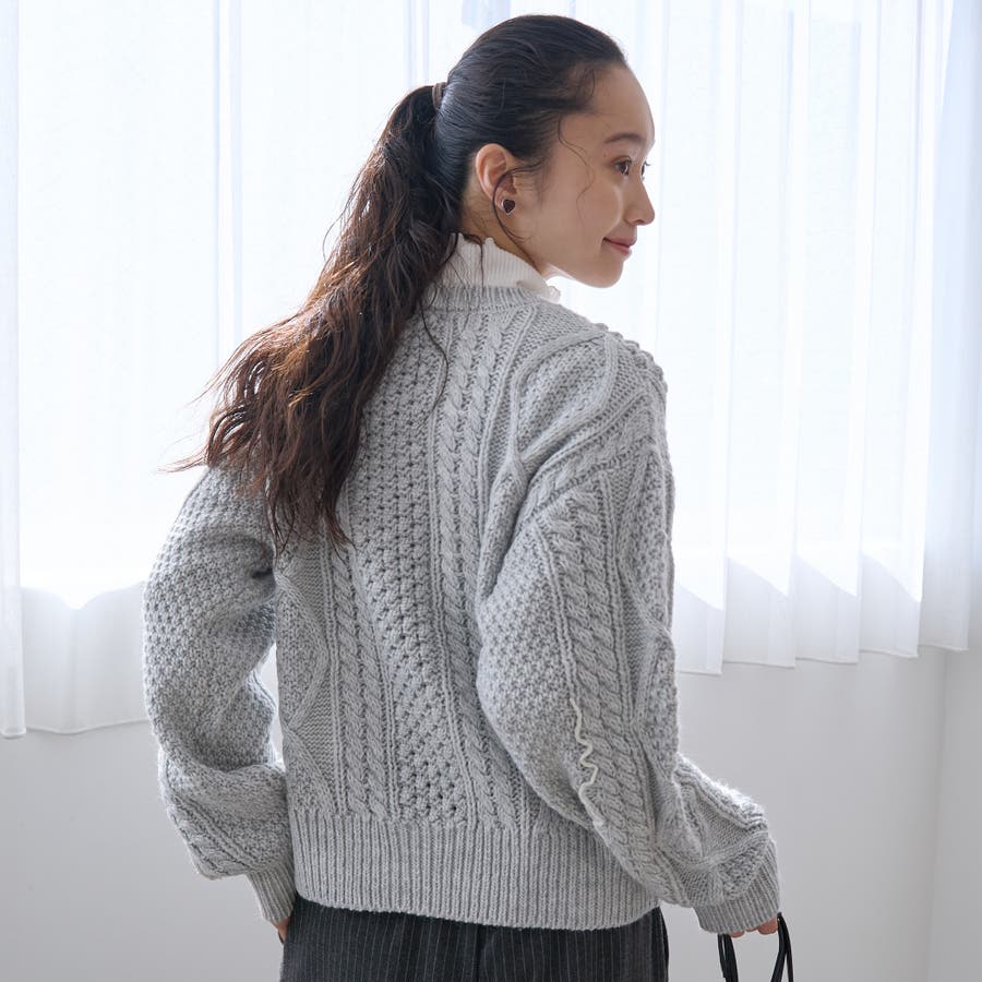 配色メローケーブル編みニットカーディガン(品番:76376000010)