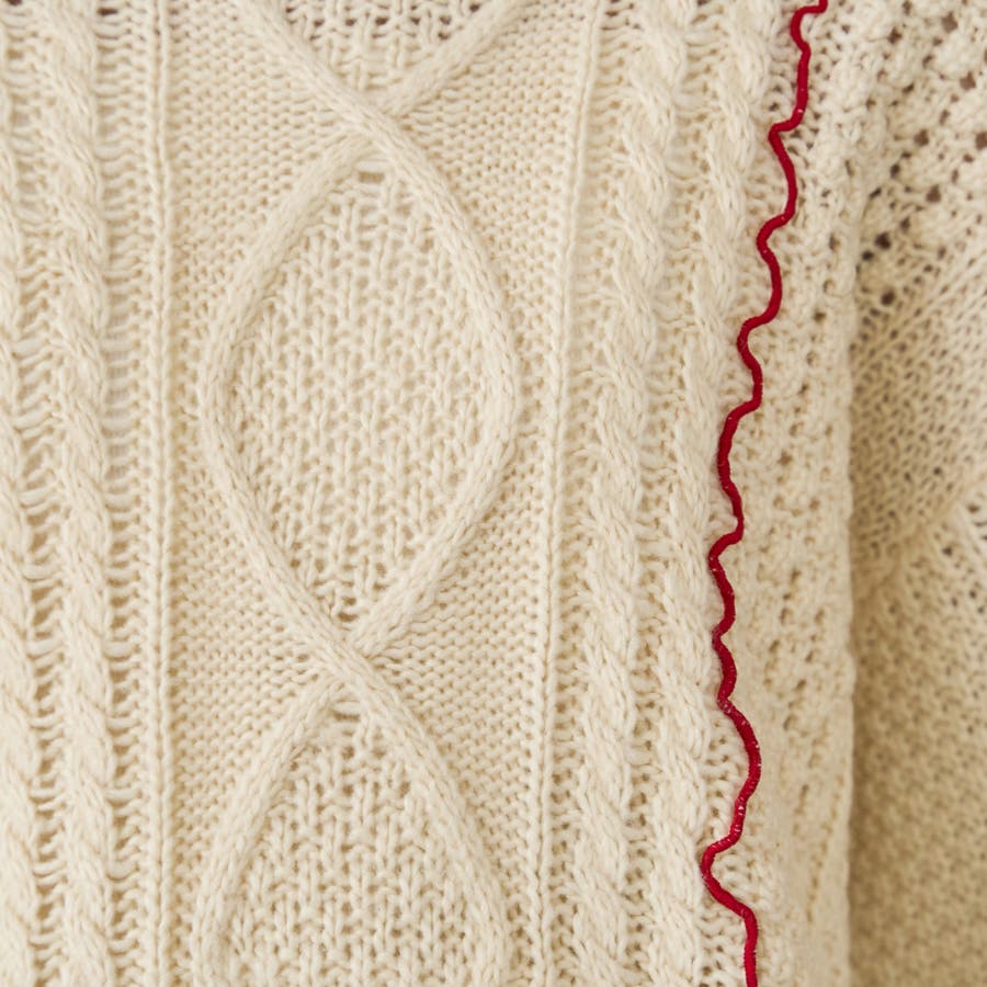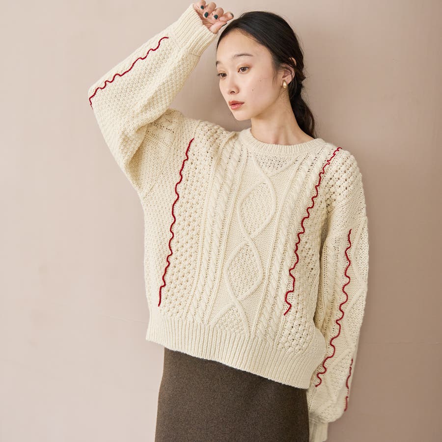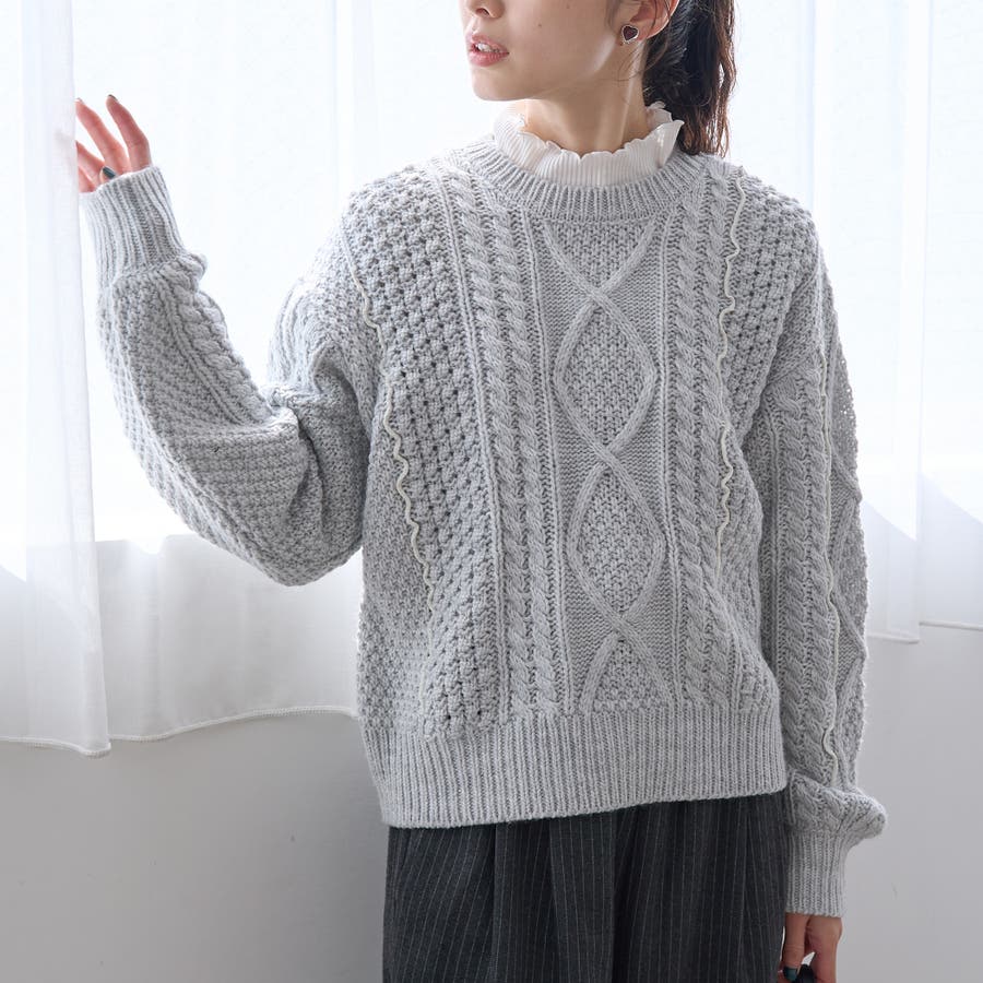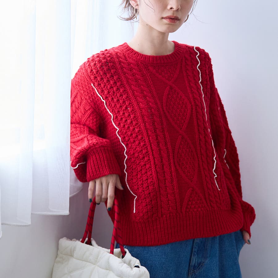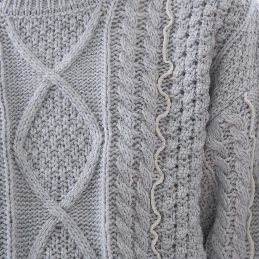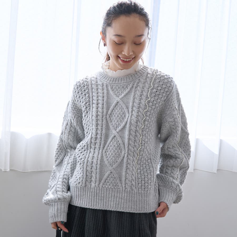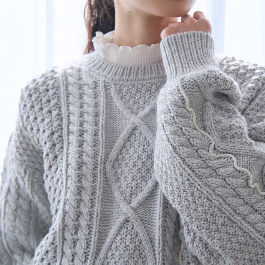 配色メローケーブル編みニットプルオーバー