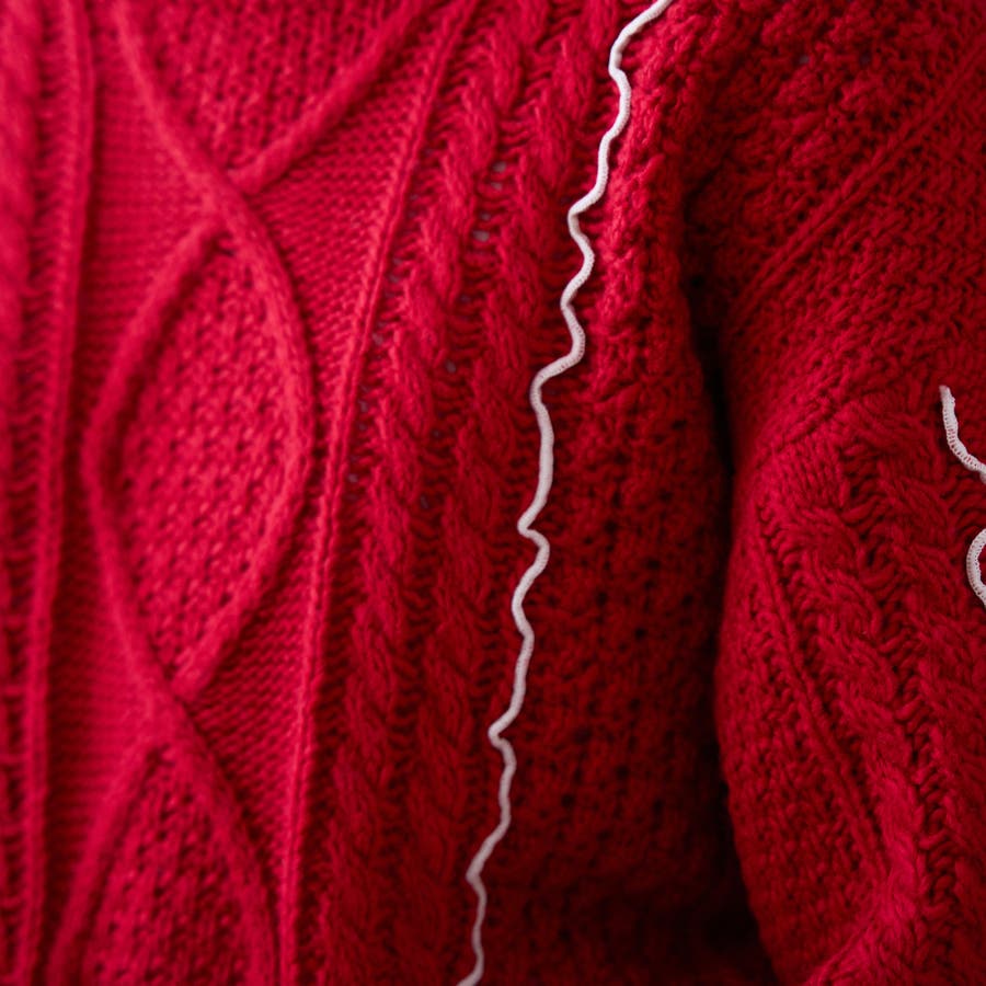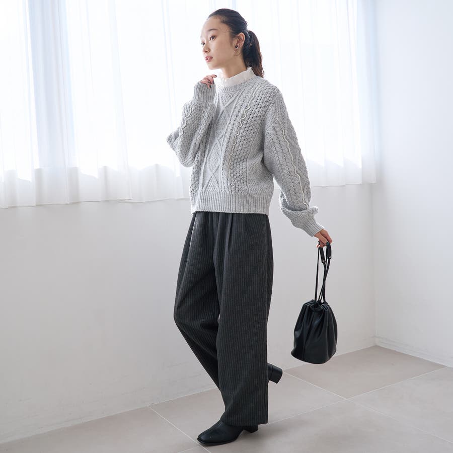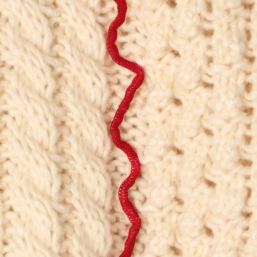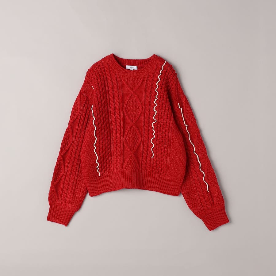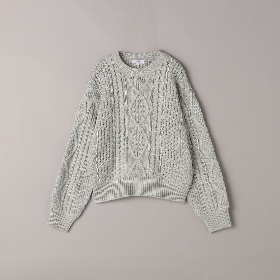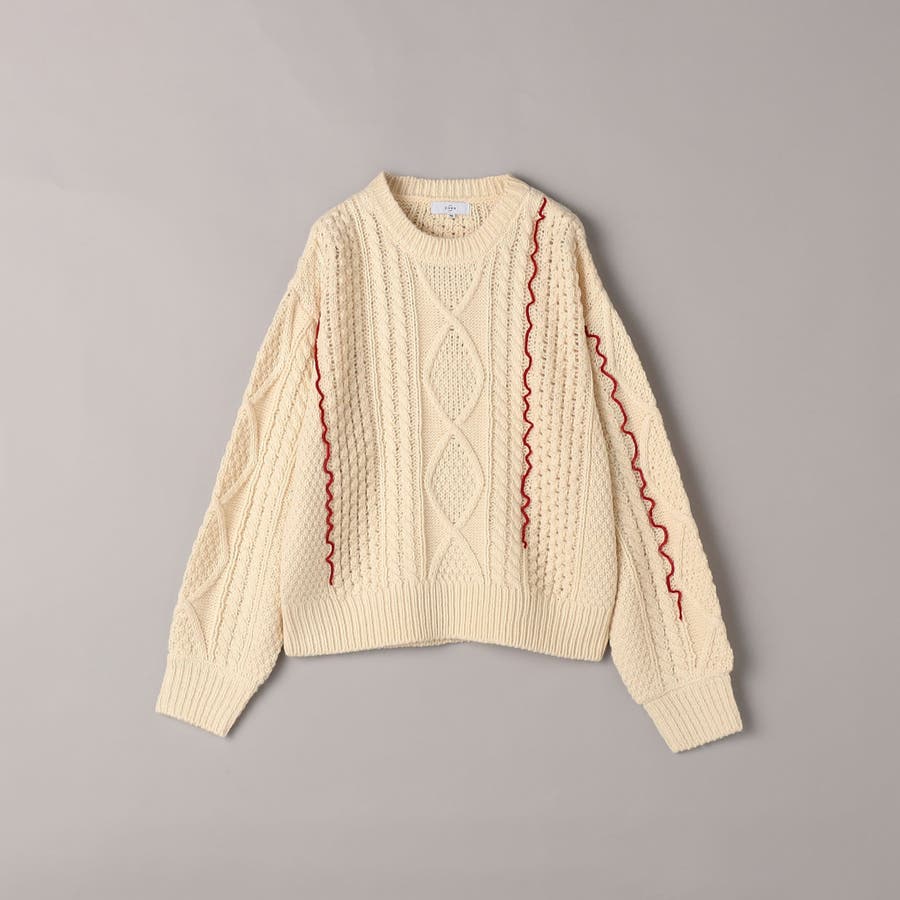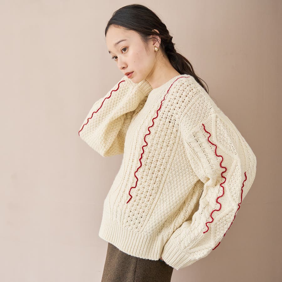 配色メローケーブル編みニットプルオーバー