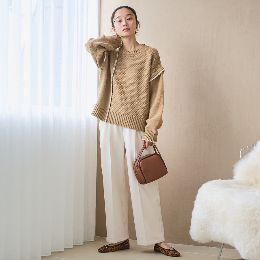 バイカラー×パッチワークで差がつく、ラクしてオシャレ見えニット。