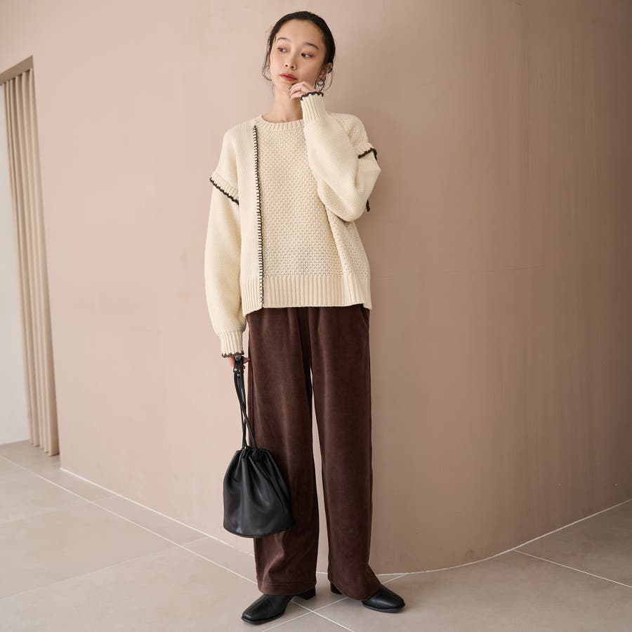 ・編み柄パッチワーク×ステッチで一枚で着映え