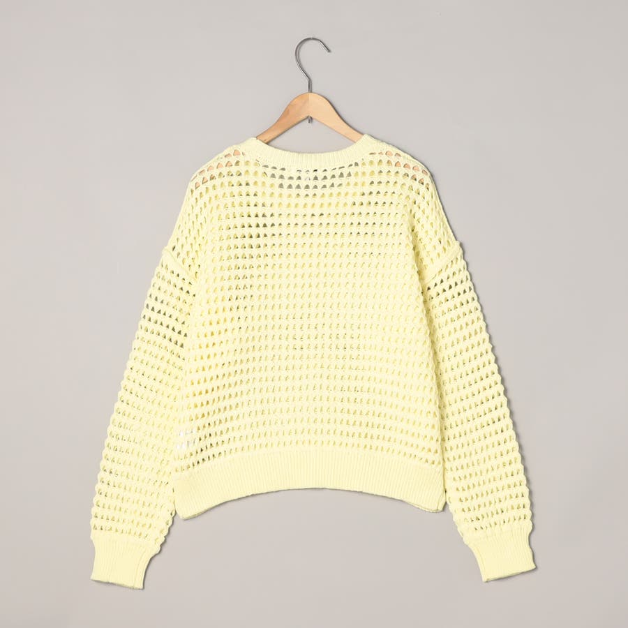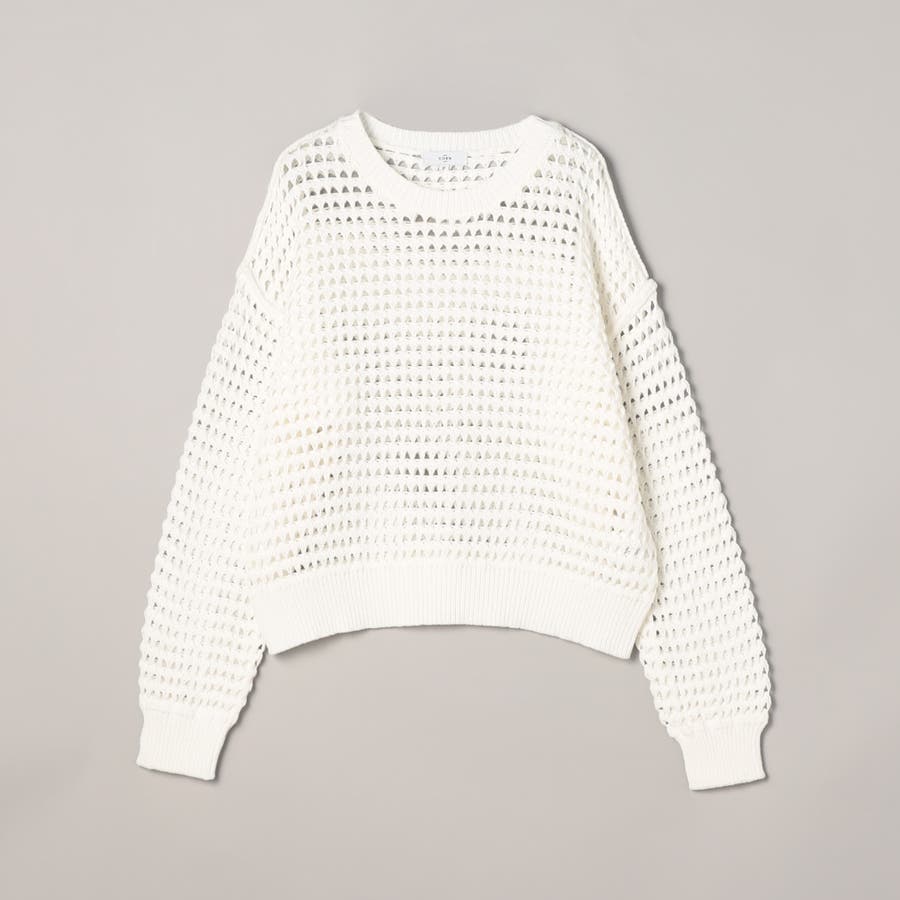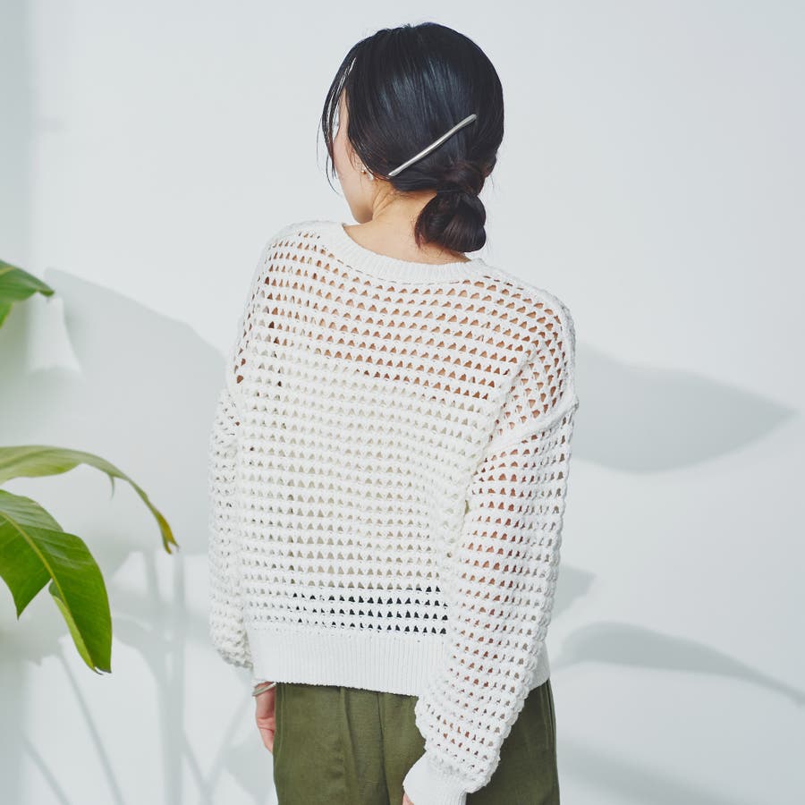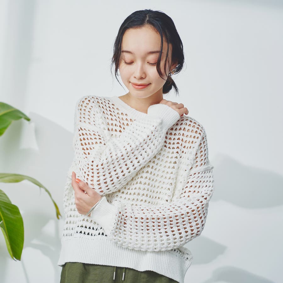 ざっくりとした透かし柄で編み立てたプルオーバー。