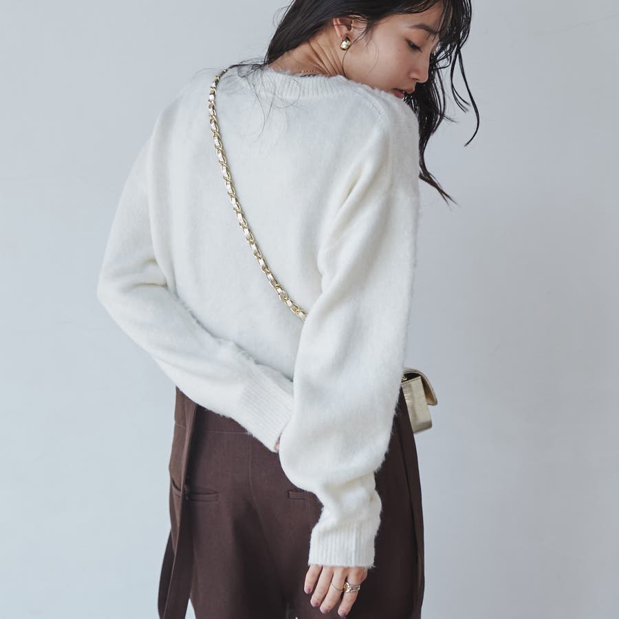 さりげないシャギー素材でフェミニンな印象のニット。