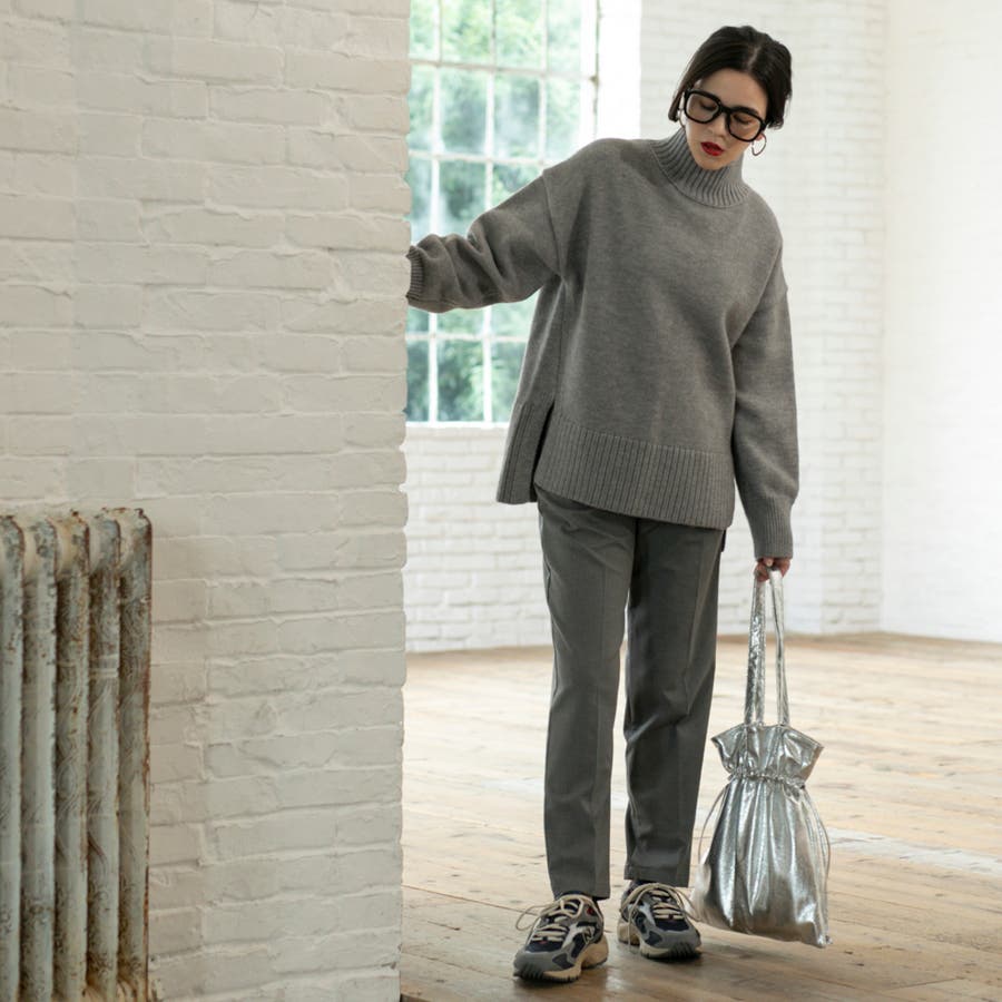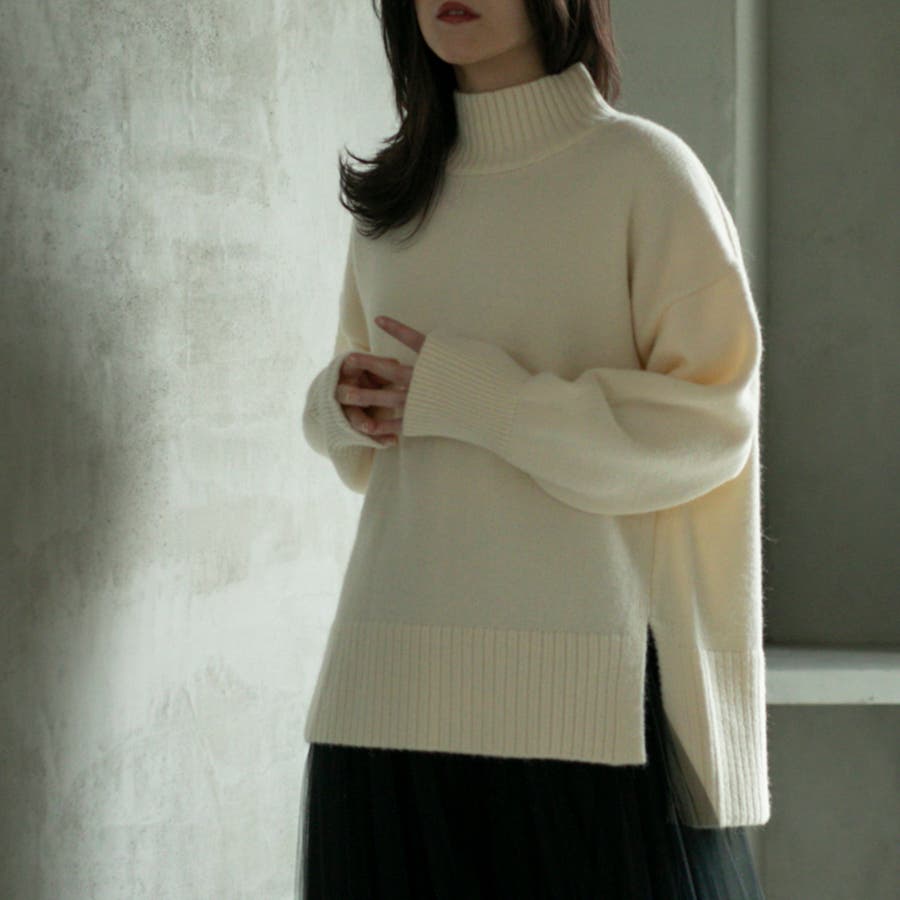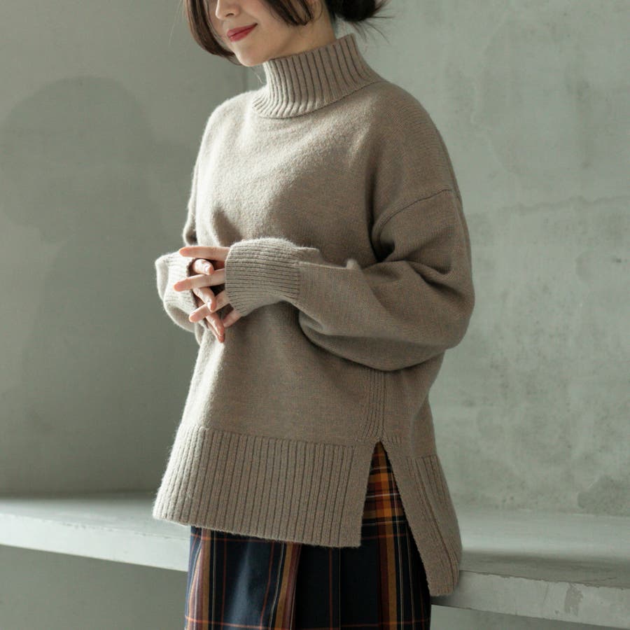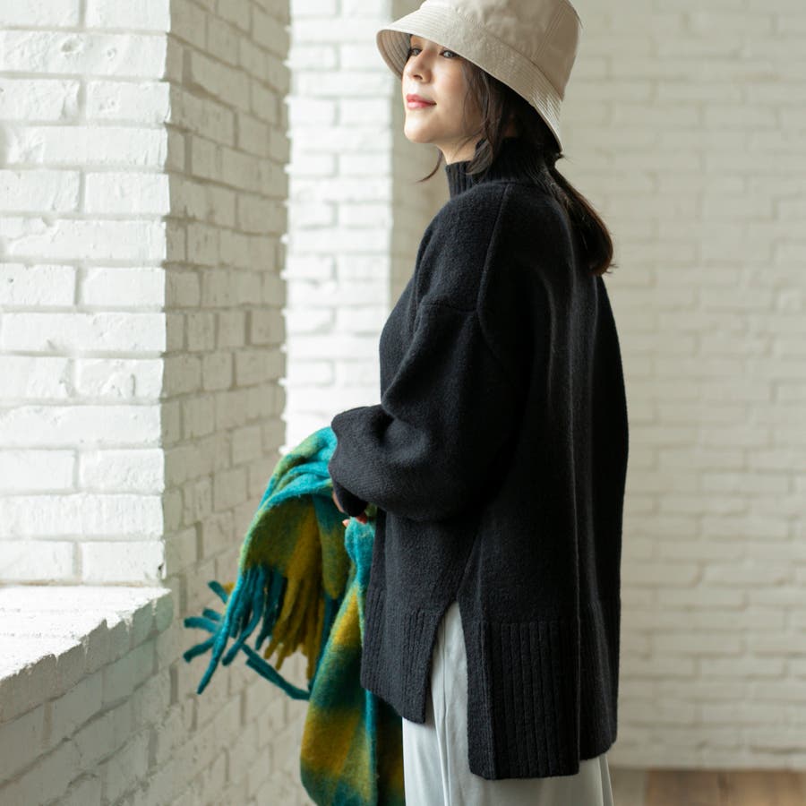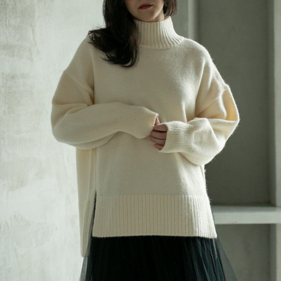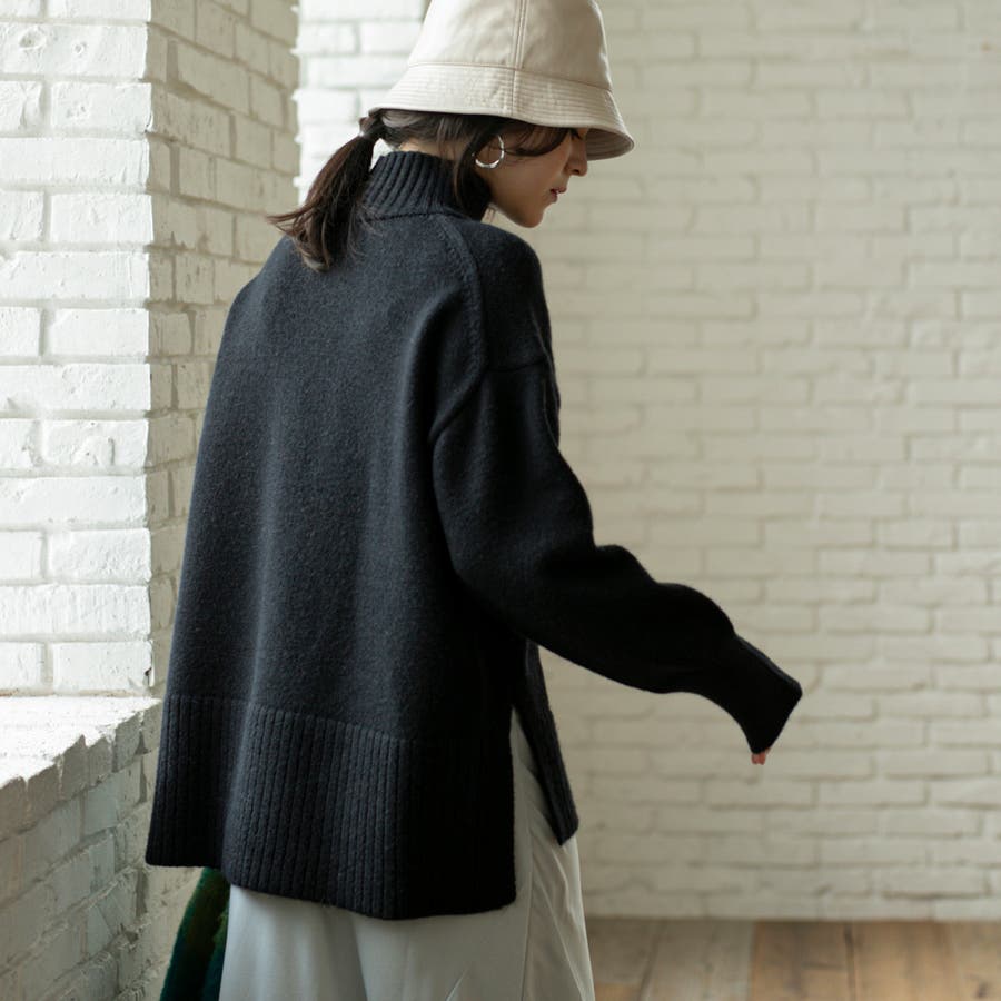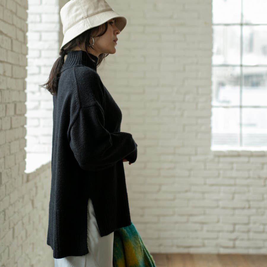 ゆったりとしたシルエットで体型カバー力も◎な華奢見えハイネックニット。