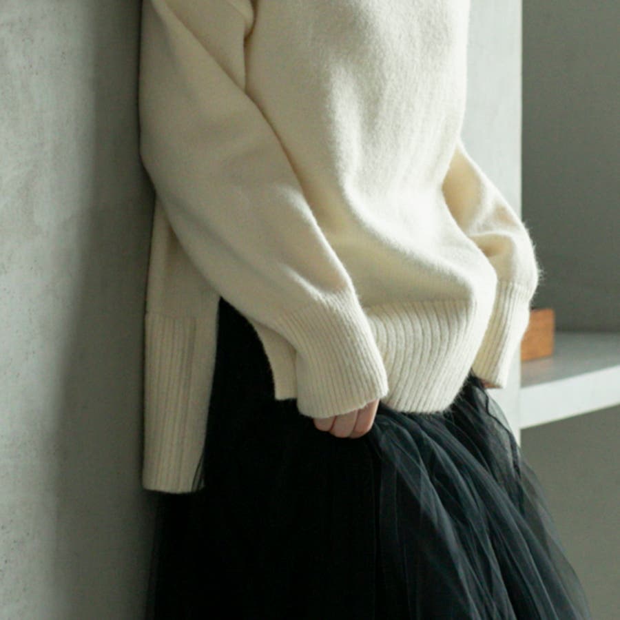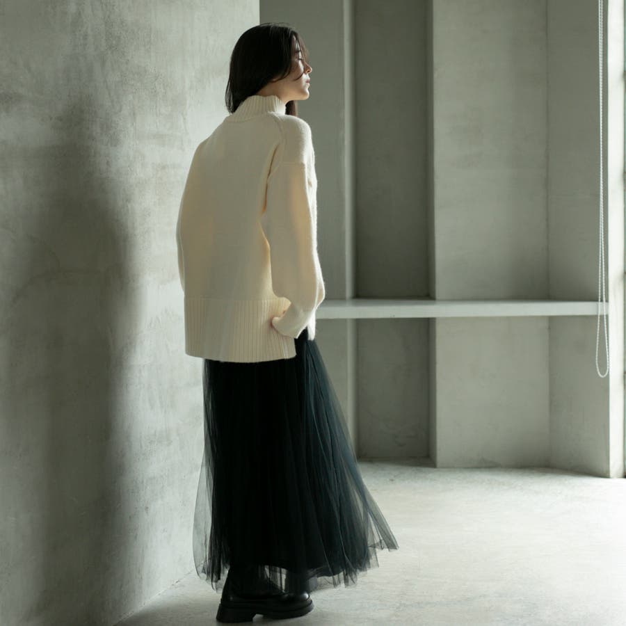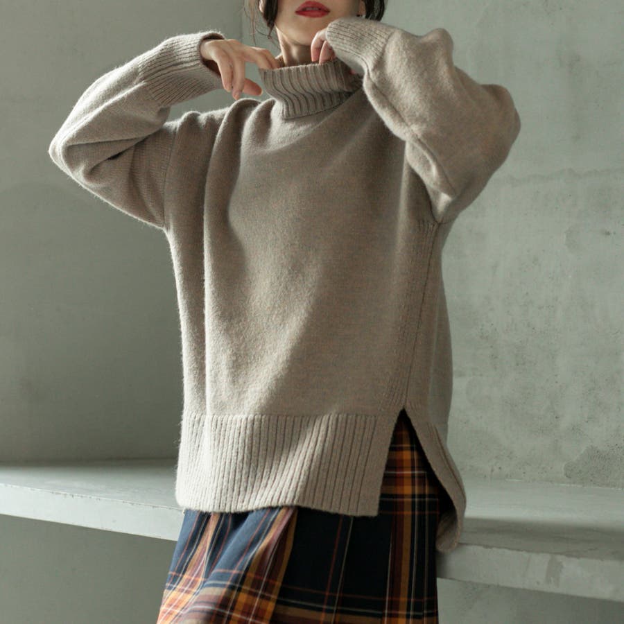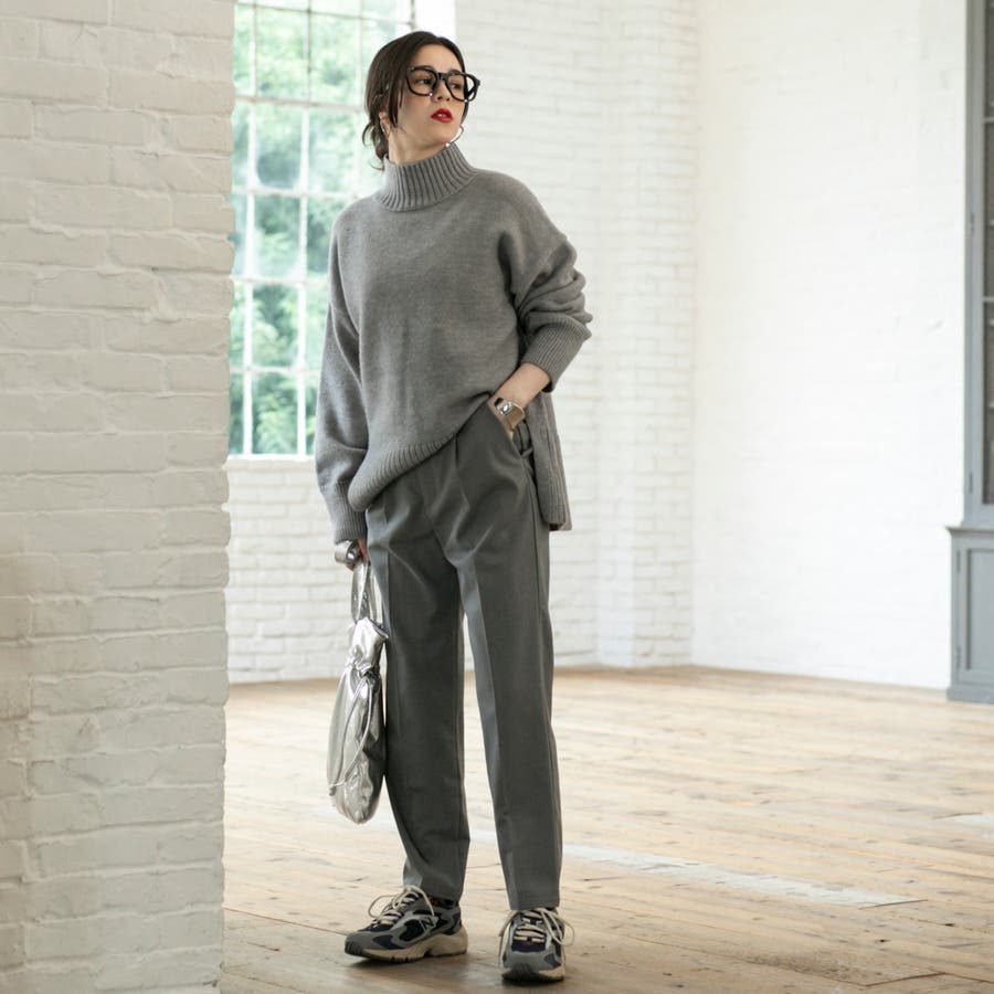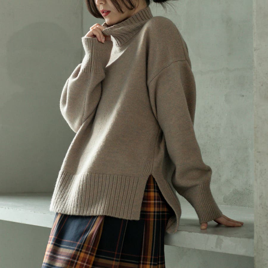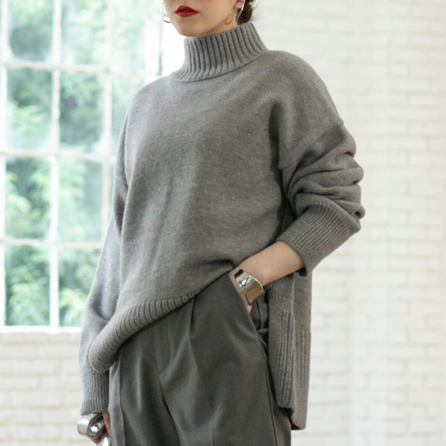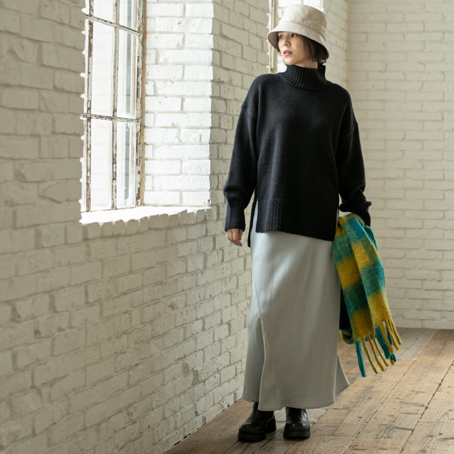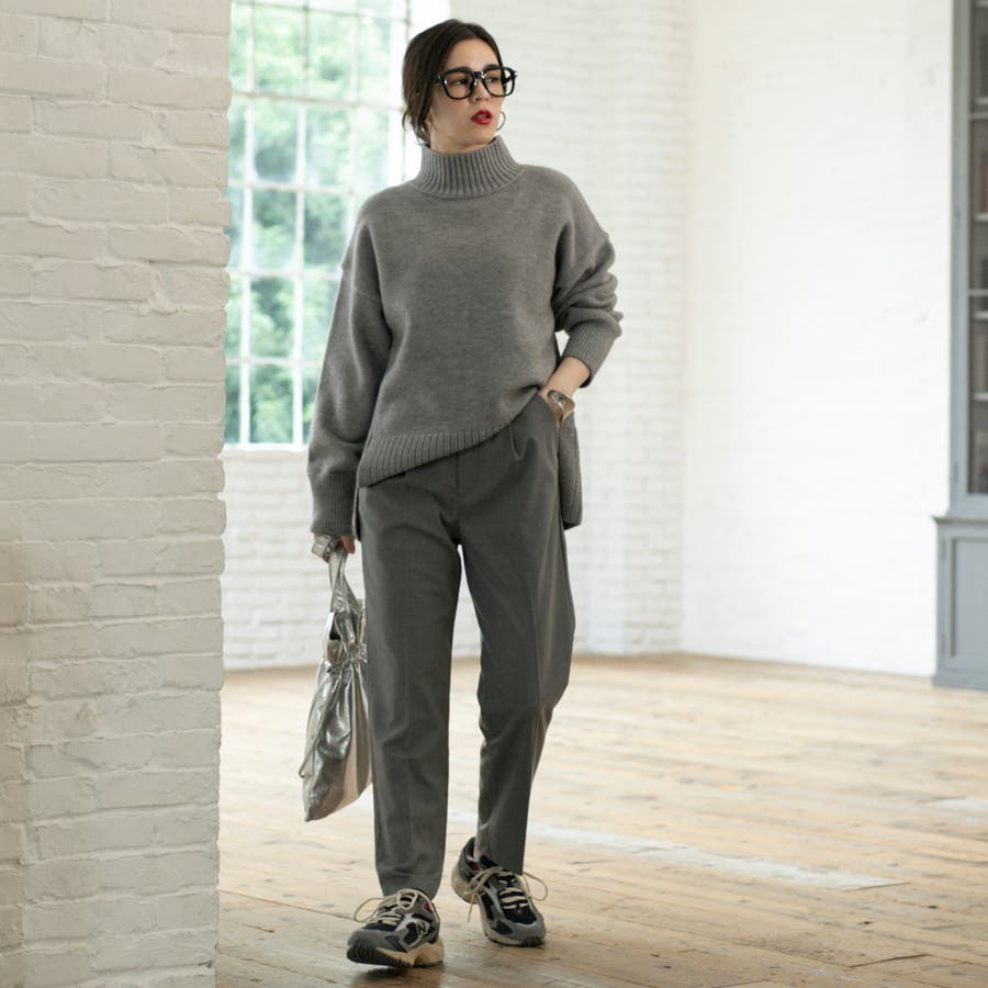 ゆったりとしたシルエットで体型カバー力も◎な華奢見えハイネックニット。