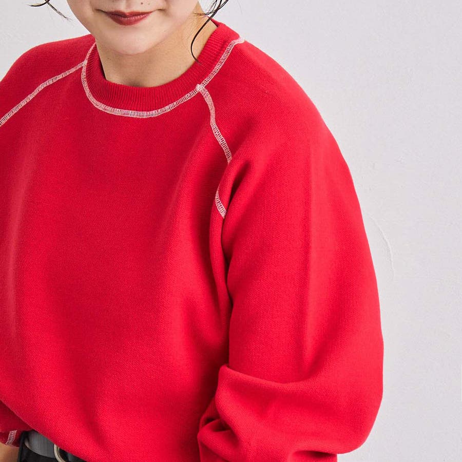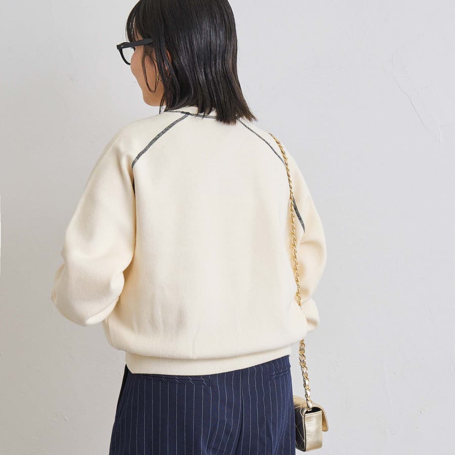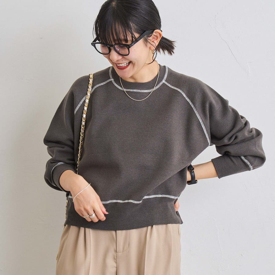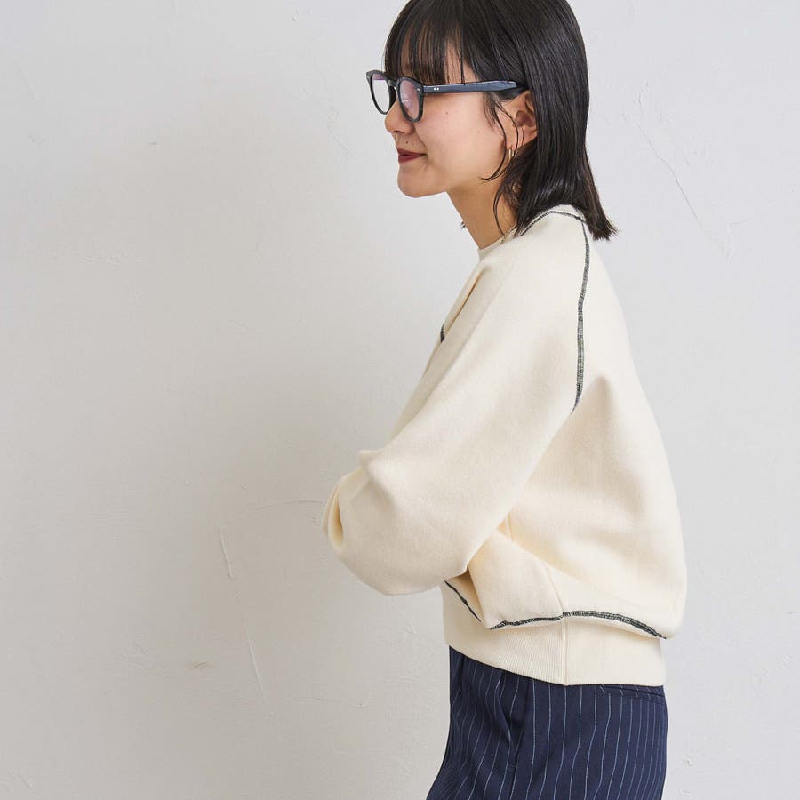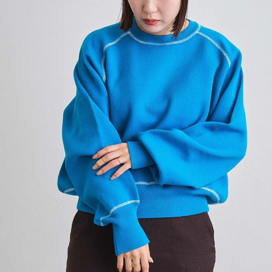 詰まったネックと裾や袖リブでコンパクト見えの一枚は、ラグランスリーブで身幅にゆとりを持たせたトレンドのシルエットとなります。