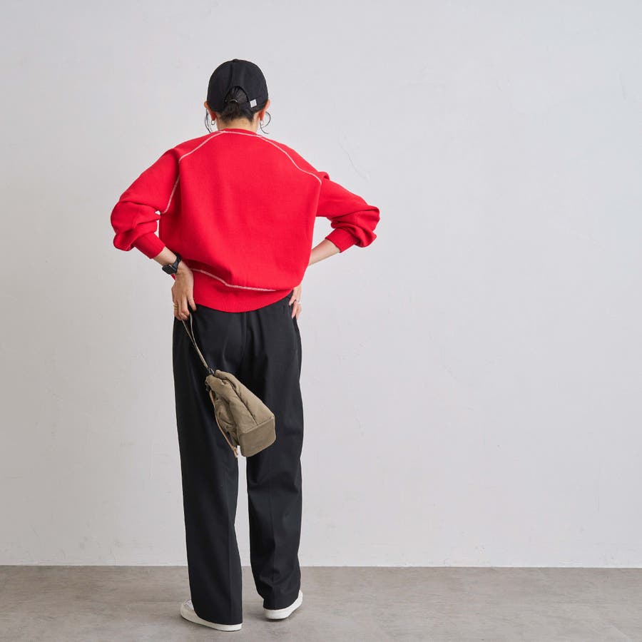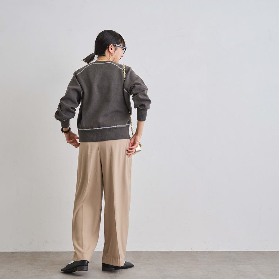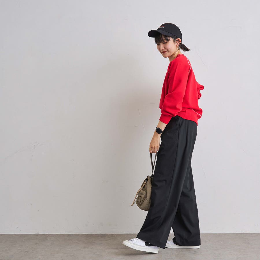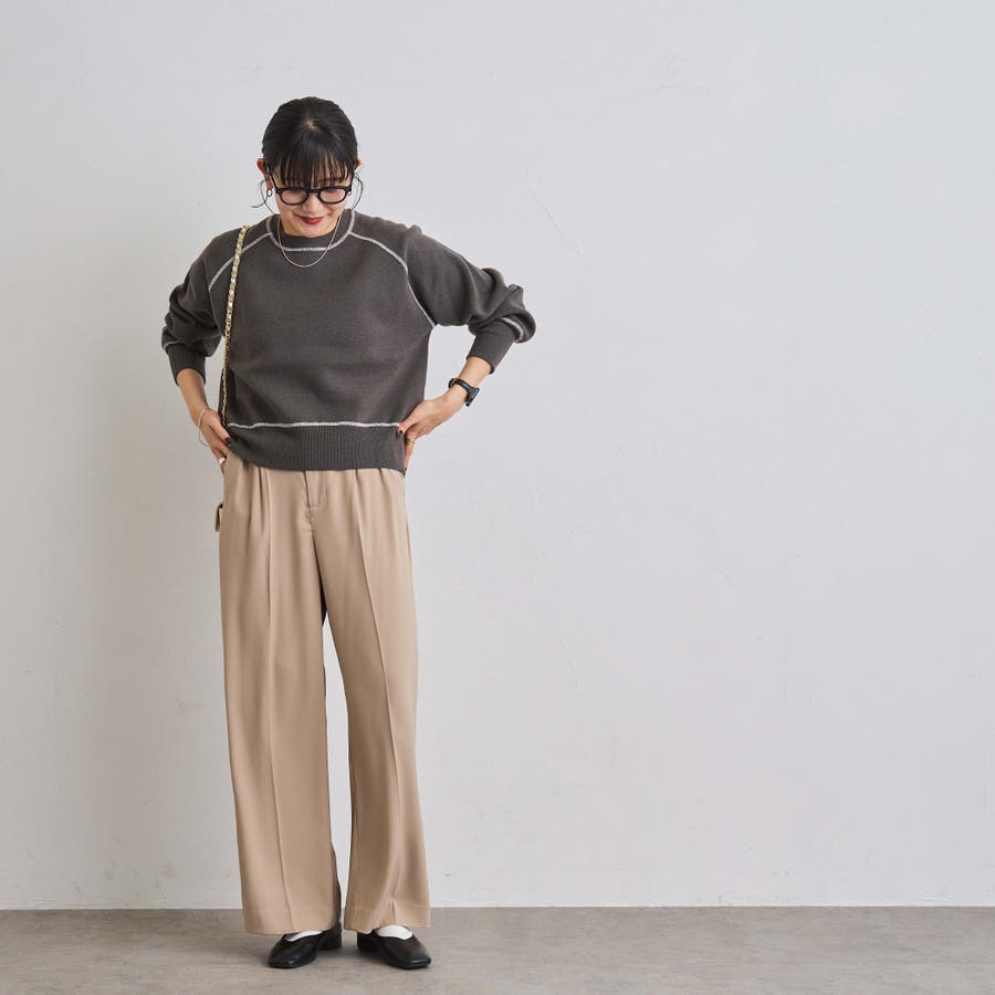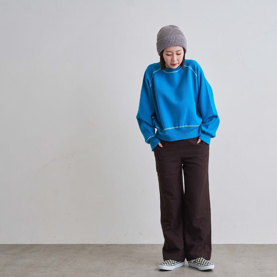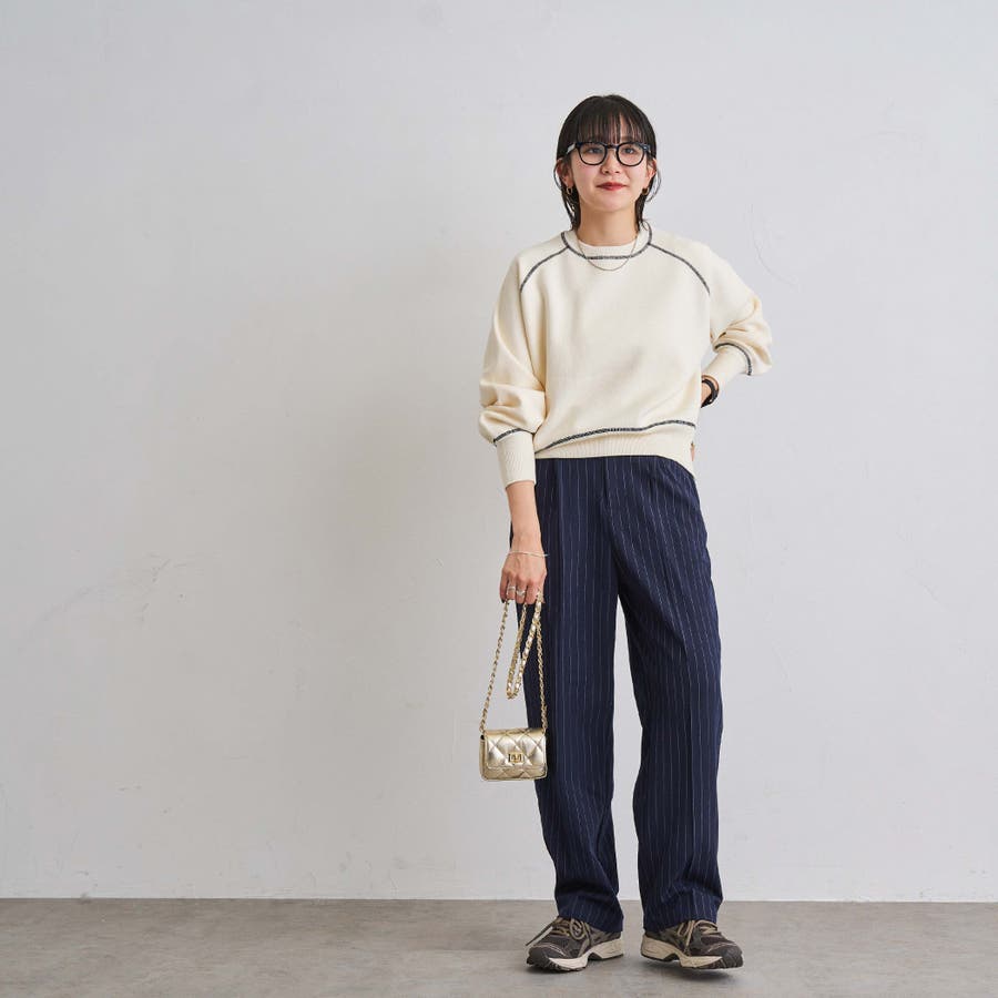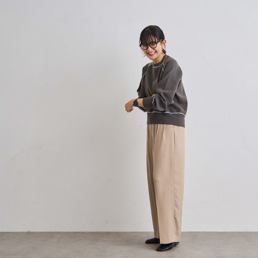 スェット感覚でスタイリングできる二ットは、スラックスや落ち感のあるスカートなど大人めなスタイリングもおすすめです。