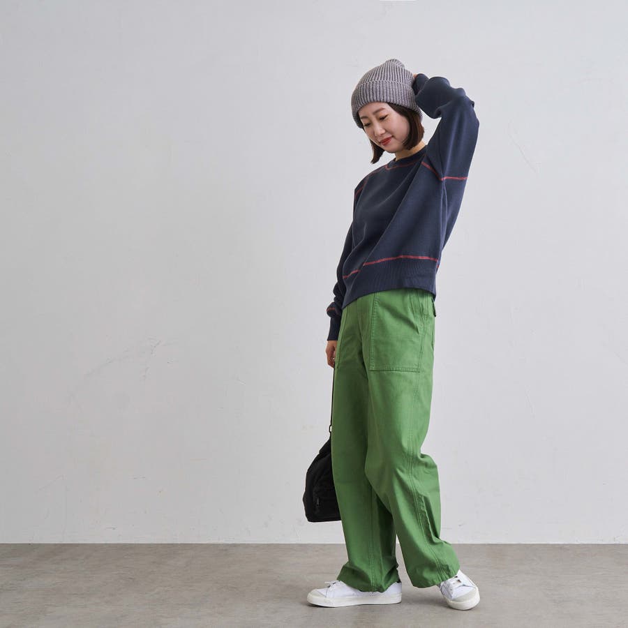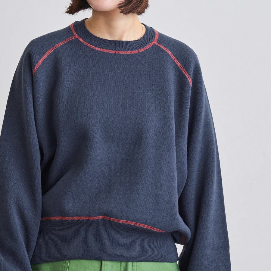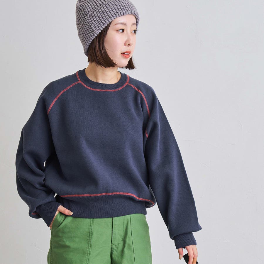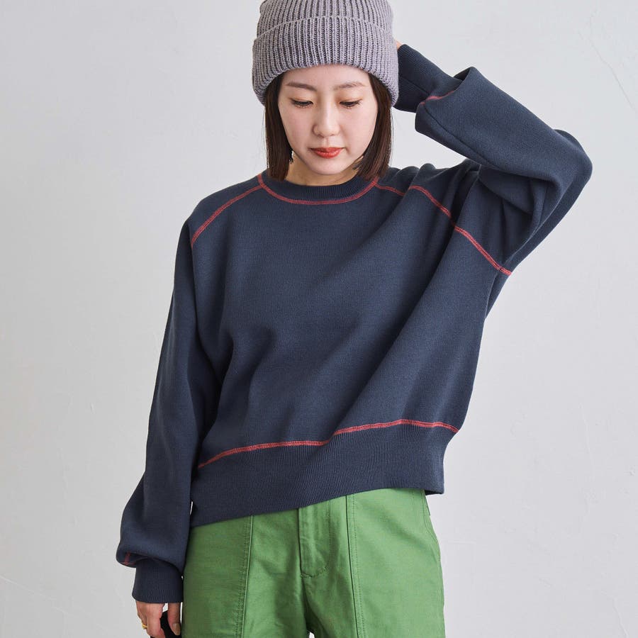 スウェット感覚でラフに合わせられて、配色のステッチがデザインポイントのプルオーバー。