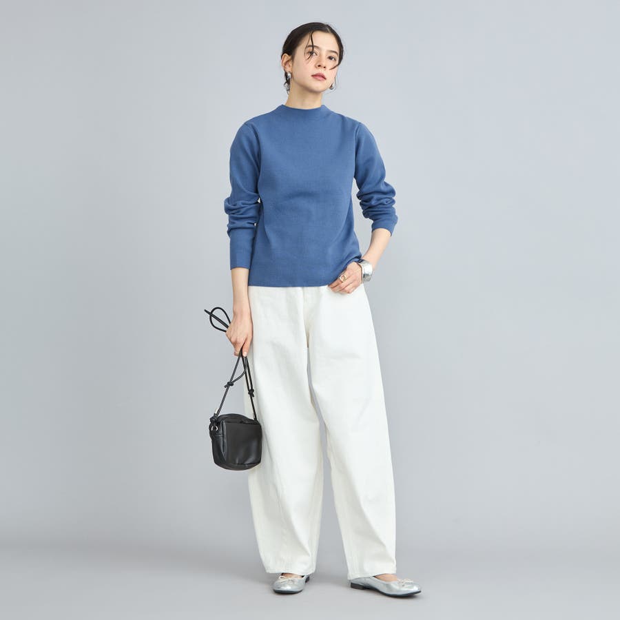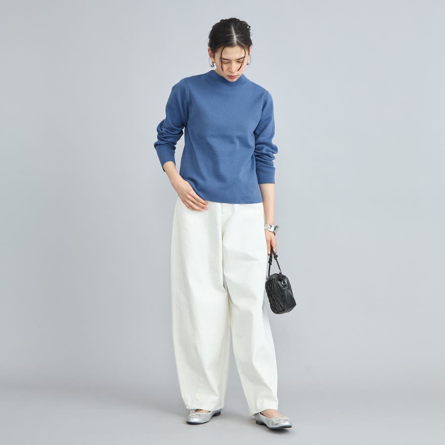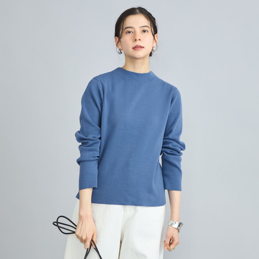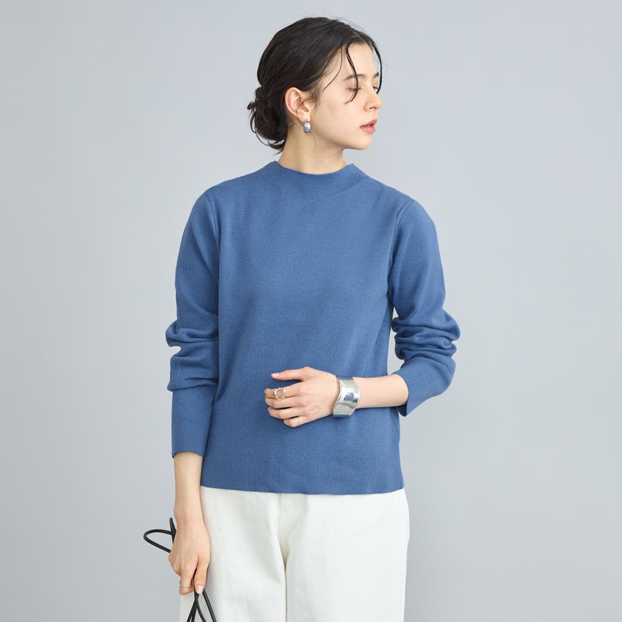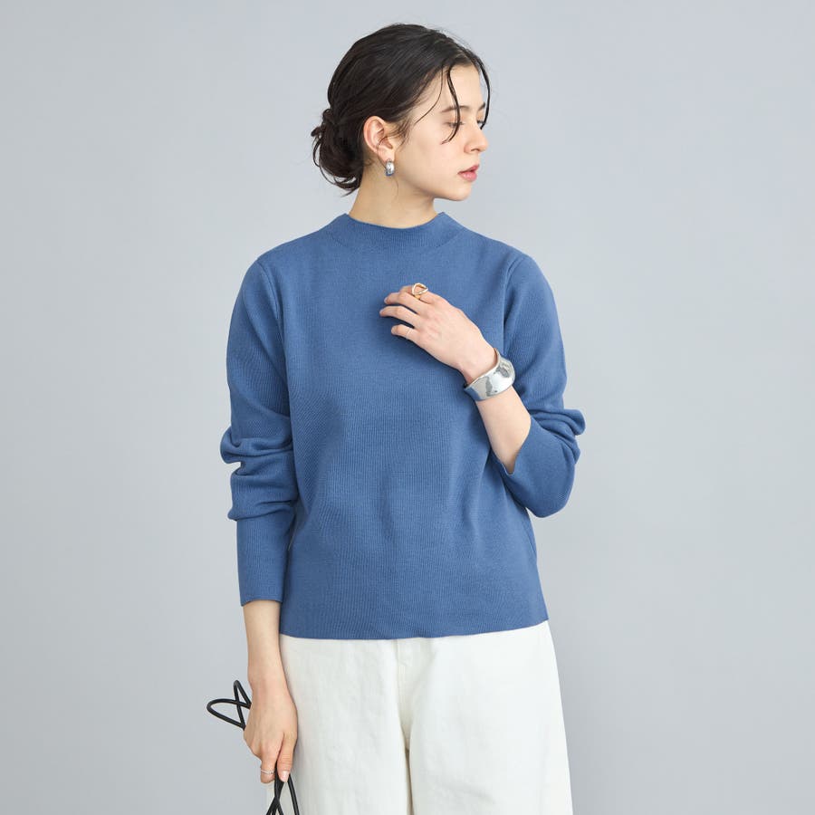 詰まり具合が程よいモックネックのニットプルオーバー。